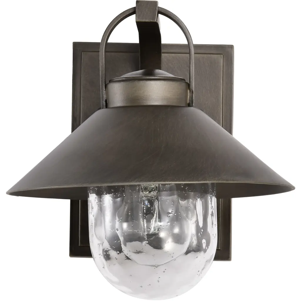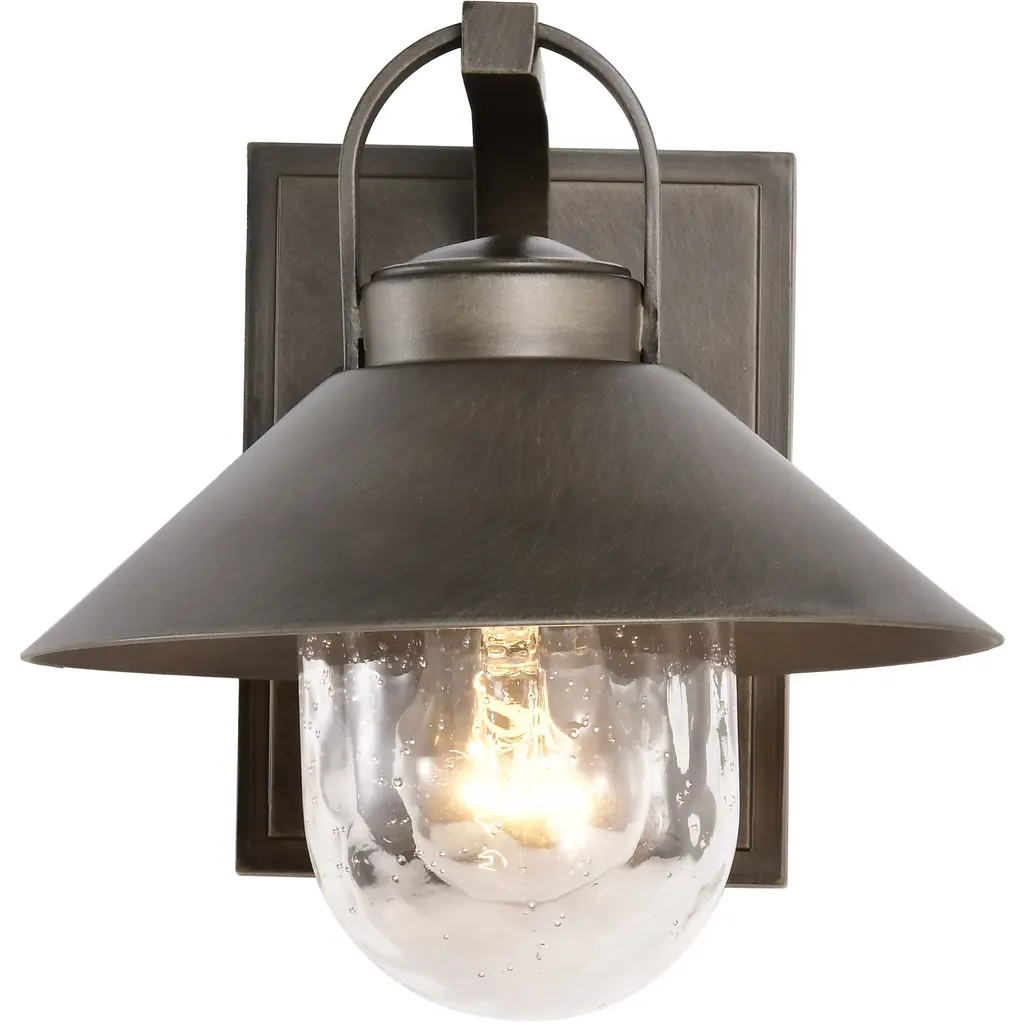 The Ridge 60-8530 outdoor small wall lantern brings cottage-style warmth and timeless beauty to your outdoor spaces. Perfect for your porch, garden, or entryway, they enhance your home with classic style reimagined for today's aesthetic. Finished in bronze, it complements any home, whether it's a coastal retreat or an urban oasis. The clear seeded hammered glass bulb cover creates a soft, textured glow, adding a touch of rustic charm while providing gentle illumination. Designed with understated elegance, these lanterns offer a perfect blend of classic appeal and modern sensibility.