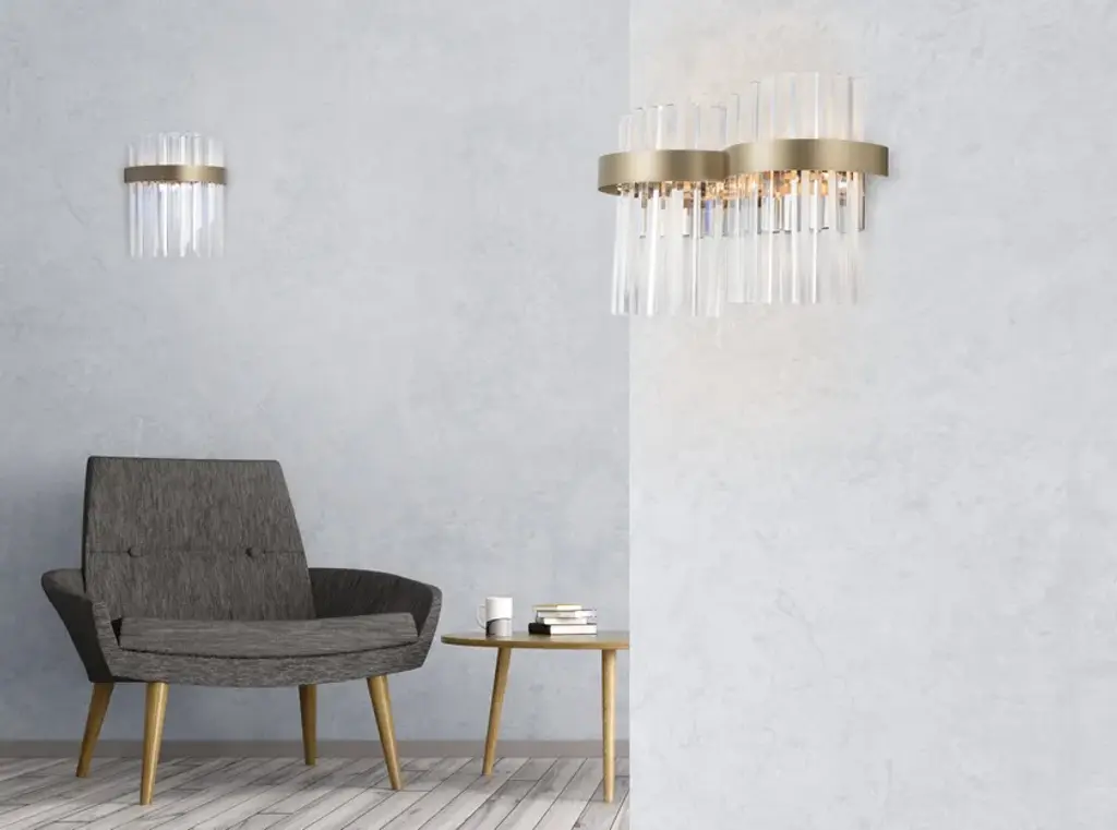 Light source: 4 x G9 halogen energy saving - 4 x G9 LED bulbs.A precious, clean and modern line with antique shades, a bright and particularly shiny crystal wrapped in a metal band, a perfect marriage between design, beauty and quality; a bright spot that conveys value, style, and uniqueness to every ambient it is added to.Available finishes: Polished chrome, Tortora, Brushed Burnished.