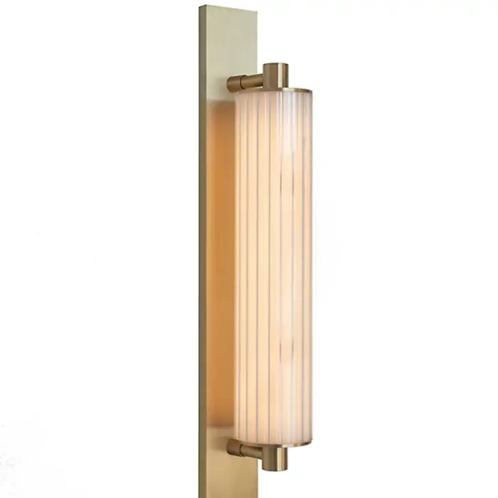 Simple yet textural, the Rigdon Double Wall Sconce highlights its elegance through attention to detail. Featuring a unique coining detail, Rigdon is available as both a single and double sconce, with opal glass and brass construction.