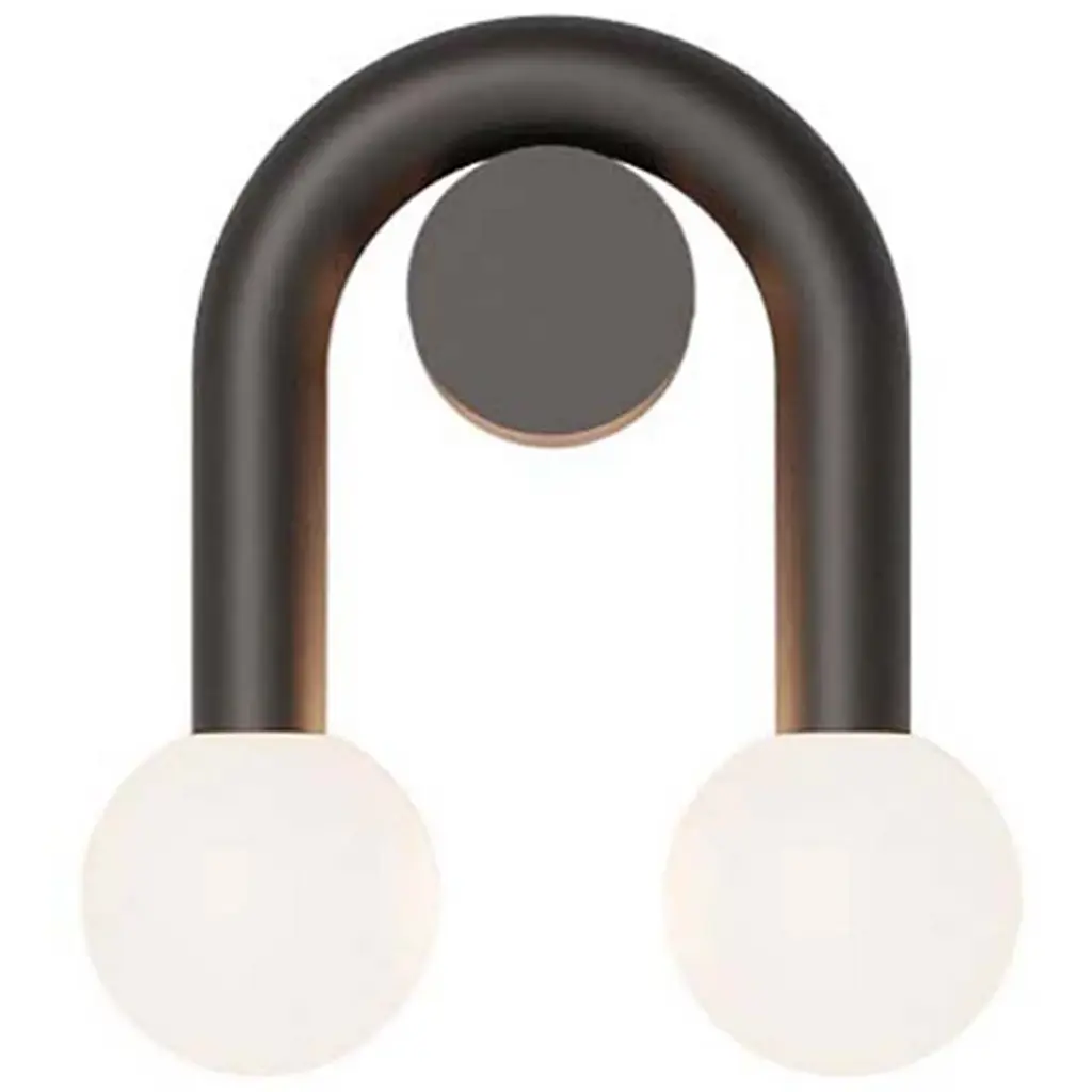 The Rigoberta Super Curved Wall Sconce from Robin is a playful, well-memorable piece that brings light and personality to any wall. It delights with a distinctive U-shaped iron body that wraps gracefully around a central wall plate. Made in Spain, this fixture draws on mid-century modern influences, its simple iron structure creating a bold yet balanced silhouette while offering a fresh, contemporary feel. Translucent shades at each end diffuse soft, ambient light, while the graphic form adds visual interest to both residential and commercial interiors.