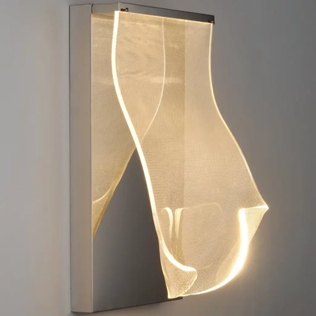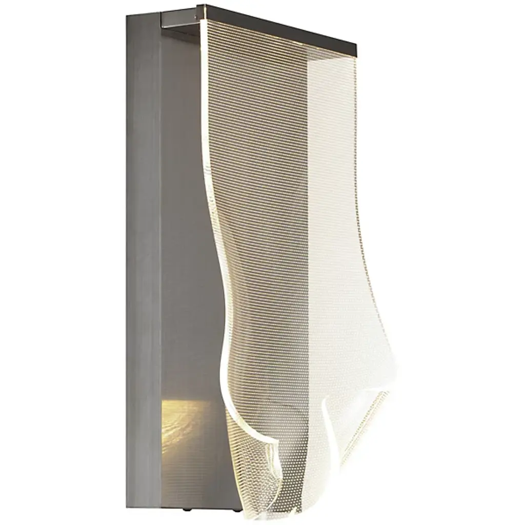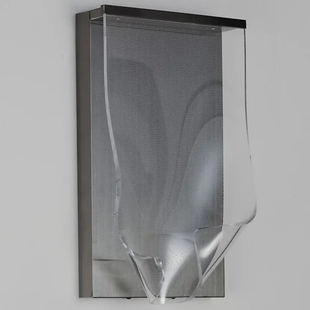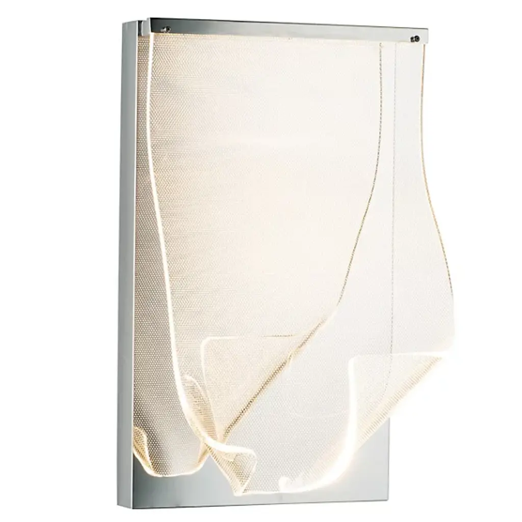 An airy arrangement of abstract forms, the Rinkle LED Wall Sconce from ET2 Lighting features transparent acrylic sheets shaped by hand. The light-guided acrylic captures the glow of energy-efficient LEDs recessed within strips of shining stainless steel, obscuring the illumination source. Delicately suspended by a series of thin wires, the pendants appear to be floating in an adjustable configuration of weightless light sculpture. Its unique design adds an artistic statement to various interiors with complimentary finishes.