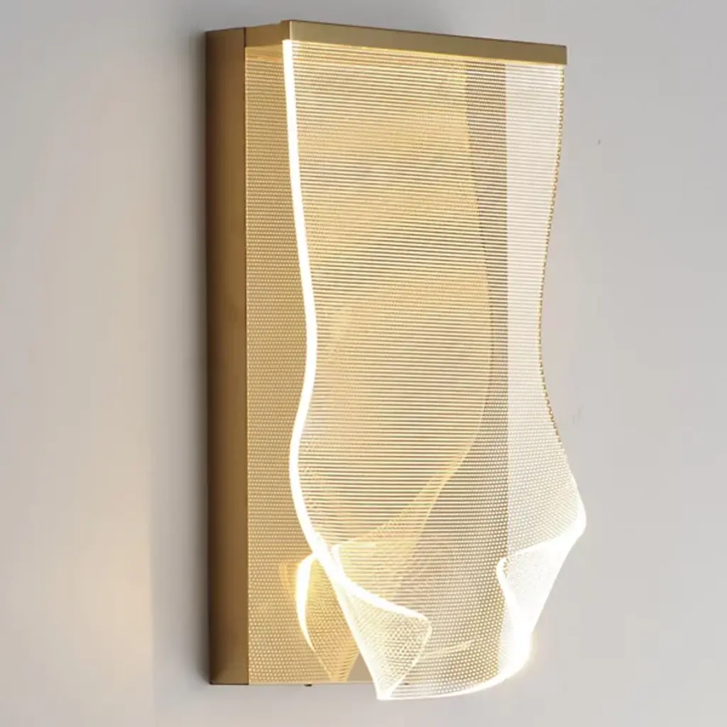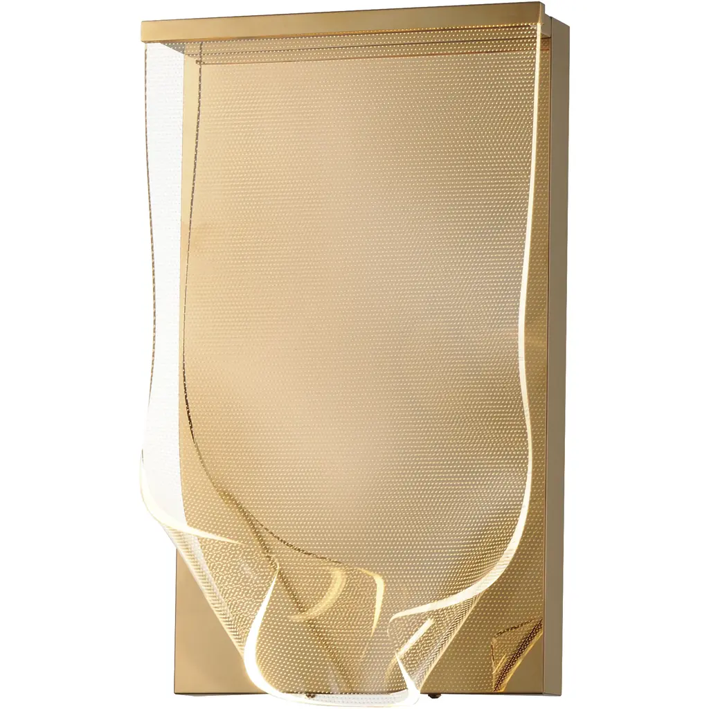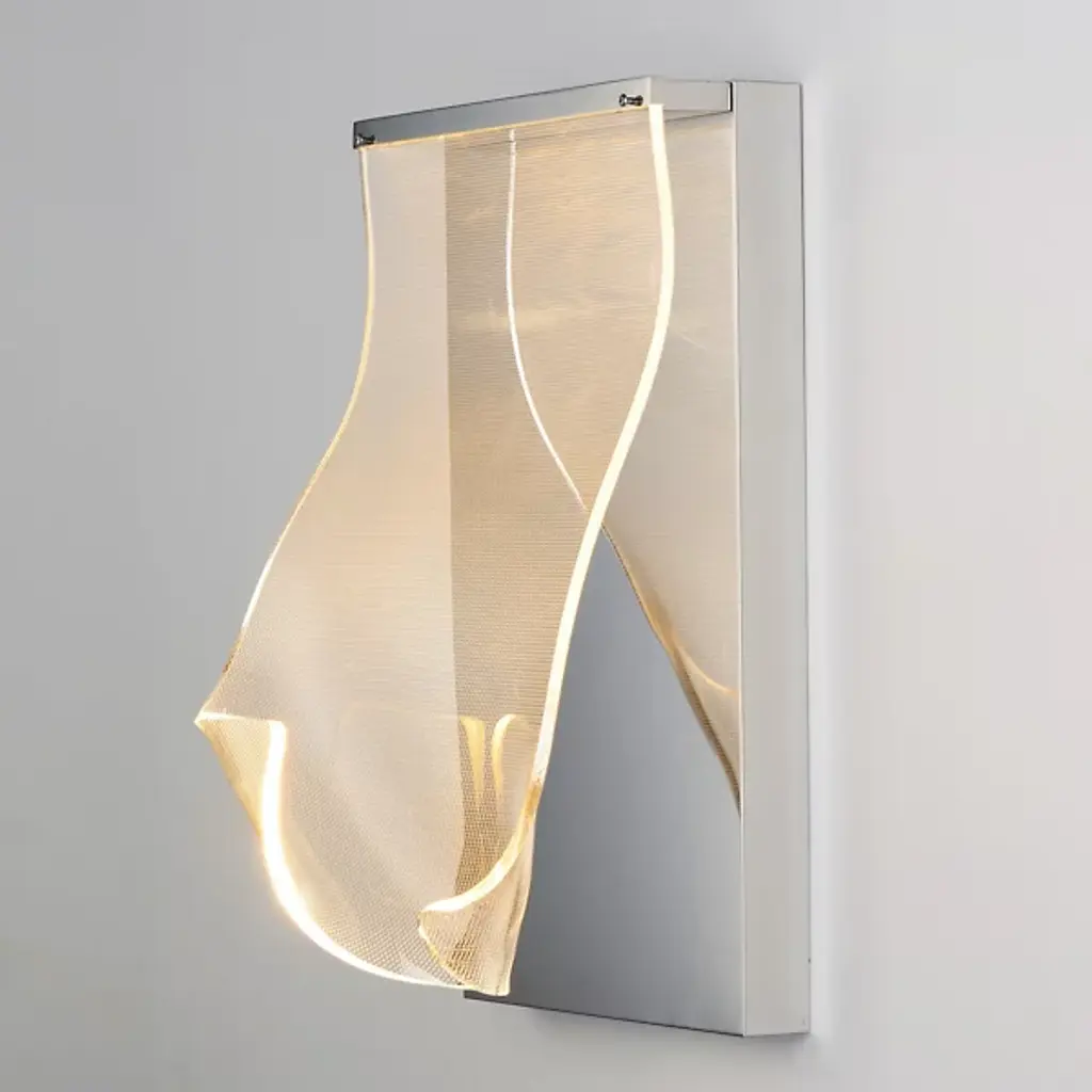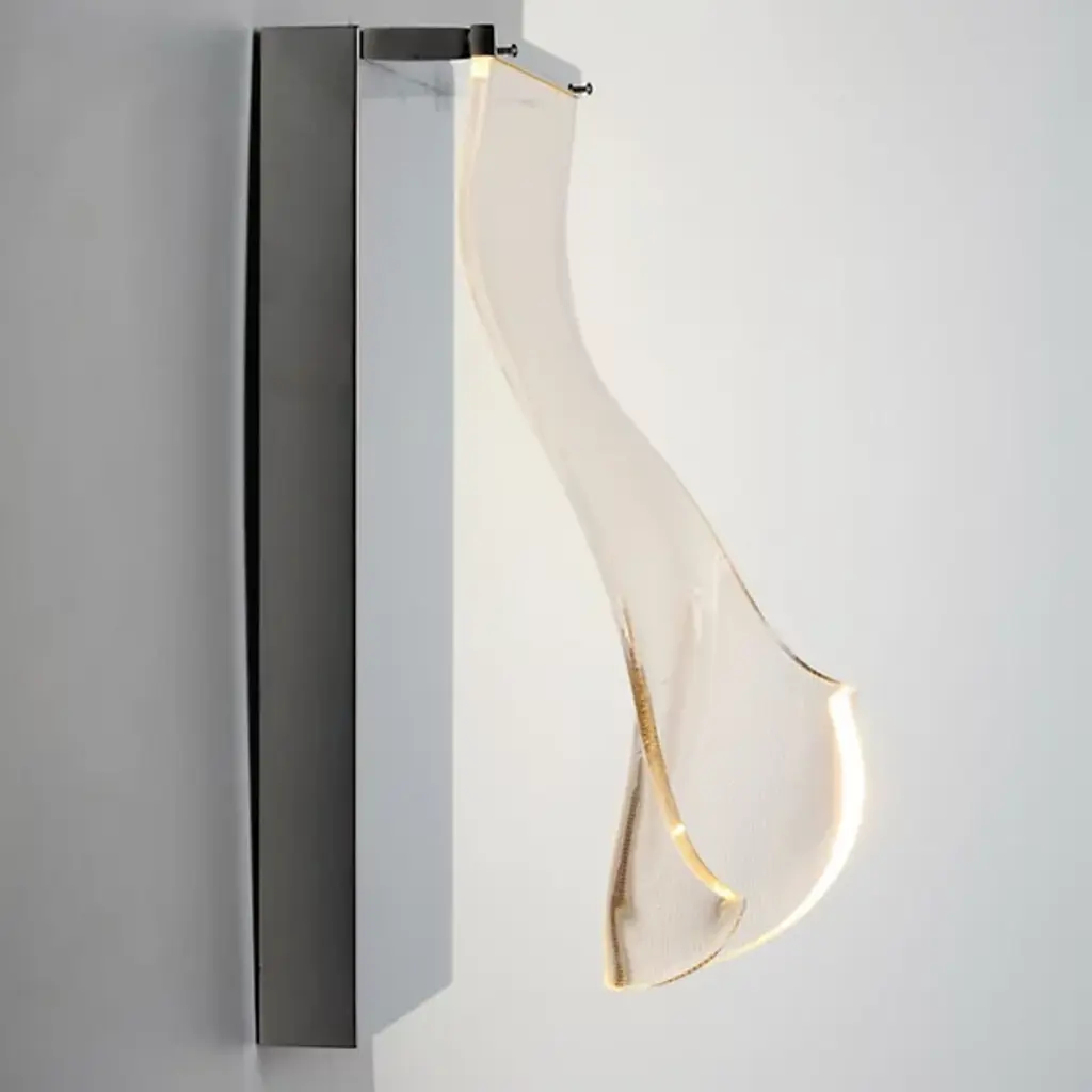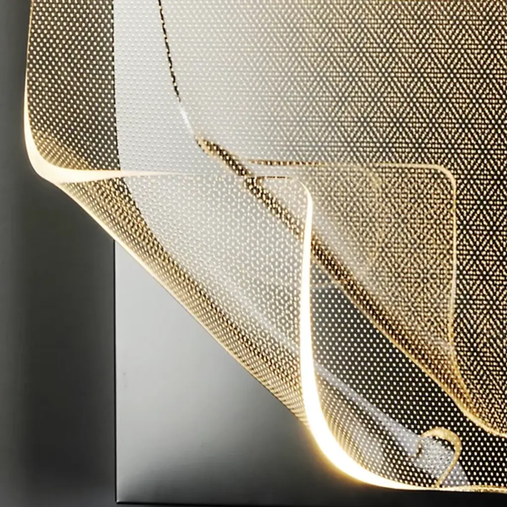 An airy arrangement of abstract forms, the Rinkle LED Wall Sconce from ET2 Lighting features transparent acrylic sheets shaped by hand. The light-guided acrylic captures the glow of energy-efficient LEDs recessed within strips of shining stainless steel, obscuring the illumination source. Delicately suspended by a series of thin wires, the pendants appear to be floating in an adjustable configuration of weightless light sculpture. Its unique design adds an artistic statement to various interiors with complimentary finishes.