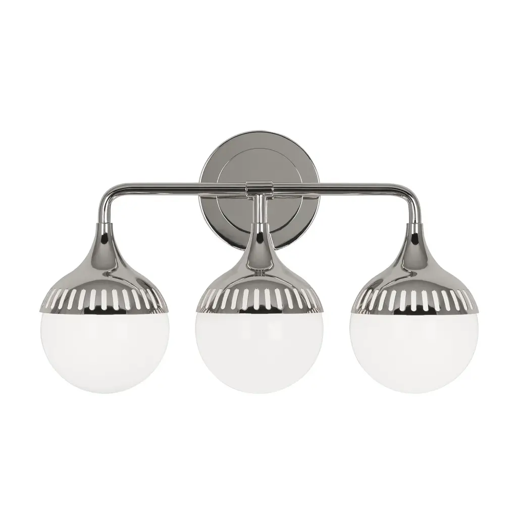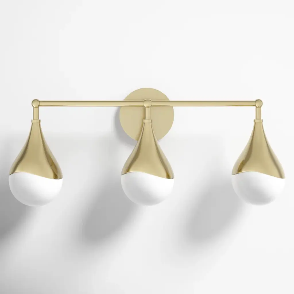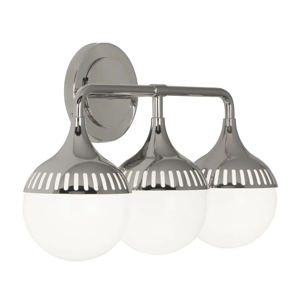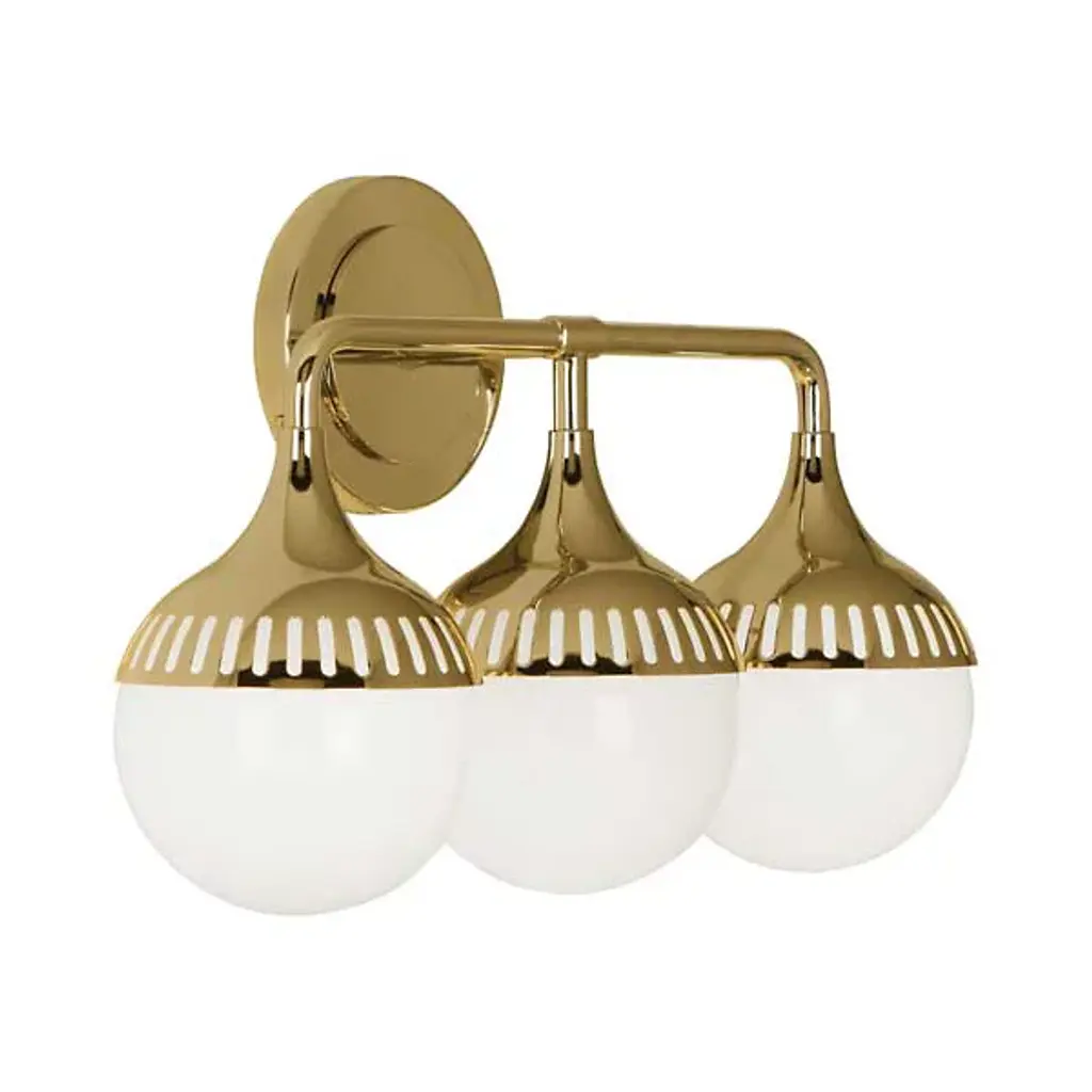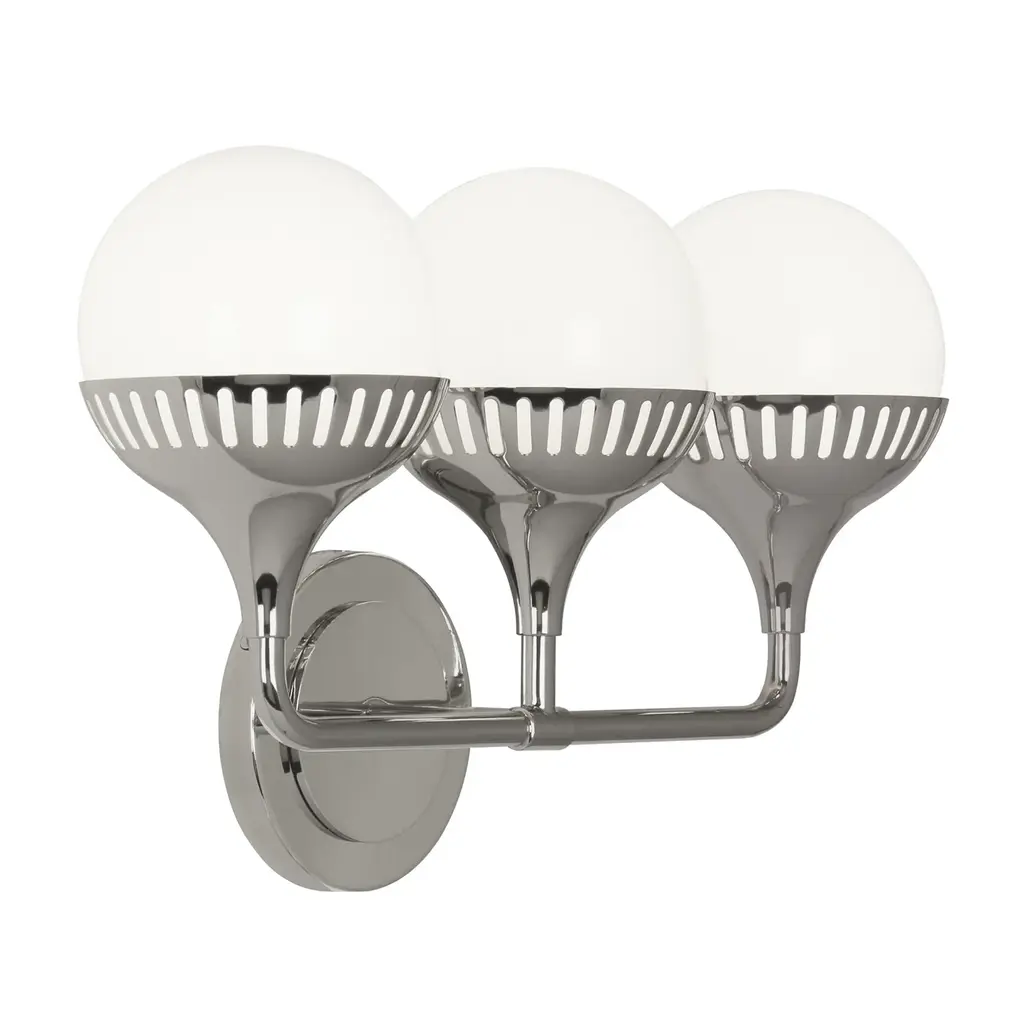 Well Rounded. Add a dash of mid-century magic or a flash of futuristic glam with our Rio Three-Light Sconce. Three elongated silhouettes resemble droplets of water, while curved shades featuring laser-cut detailing adds architectural oomph. Go for moody glamour with antique brass or twinkly chic with polished nickel. Mount horizontally or vertically. All lighting sales are final.