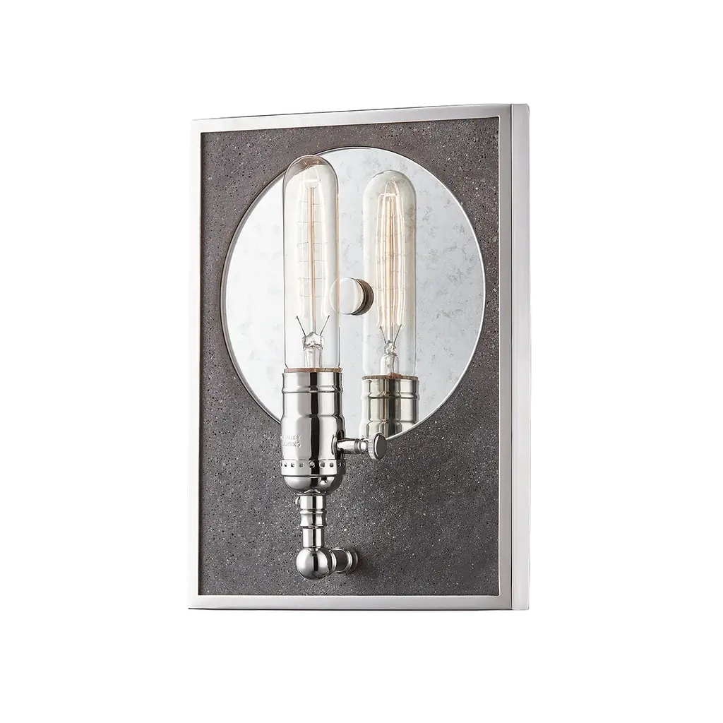 This unexpected sconce combines stone-specked concrete with mercury glass and gleaming finishes. Reflective mercury glass gives you more light. A working knurled switch adds a nice touch. Ripley’s reimagined industrial vibes come in sleek proportions, too, making this an ADA-friendly sconce.