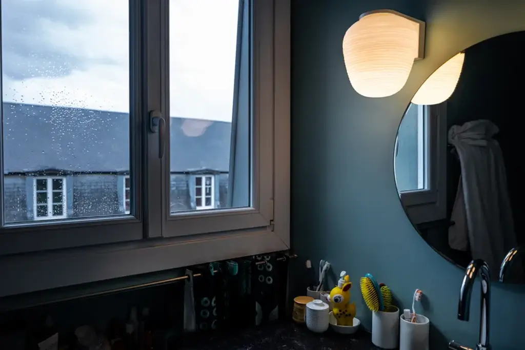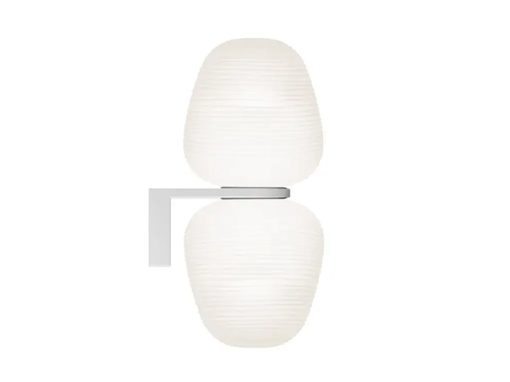Rituals 3 is a wall lamp made of blown engraved satin glass and varnished metal.LIGHT SOURCE220 / 240 VLED retrofit 70W Max E27No dimmableIP 20Bulb not included Featuring special workmanship on the blown glass, with irregular lines that etch the surface to generate warm, vibrant light. Like the pedestal of a work of art, the L-shaped support of the wall version permits different solutions: the glass can be positioned upward or downward, or in a version that combines two diffusers.