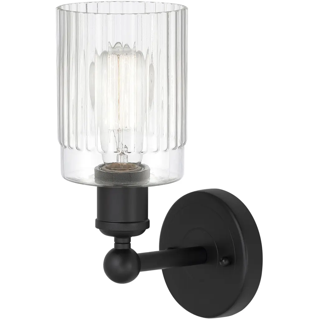 Snazzy functionality in a transitional design by Ralph Lauren. The Visual Comfort Signature, formerly known as Visual Comfort, Rivington Wall Sconce creates a dazzling runaway for its light. A steel shade presents an open platform for a bare-bulb design. Antique ribbed mirrors accentuate the figure of the bulb in a stylish background. When turned on, an ambient glow scattering across the reflective inner mirror walls beams back into the room with an elegant texture. A droplet-shaped backplate anchors the structure neatly to your walls with a space-efficient design.