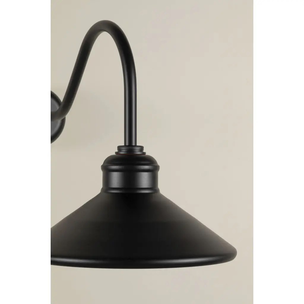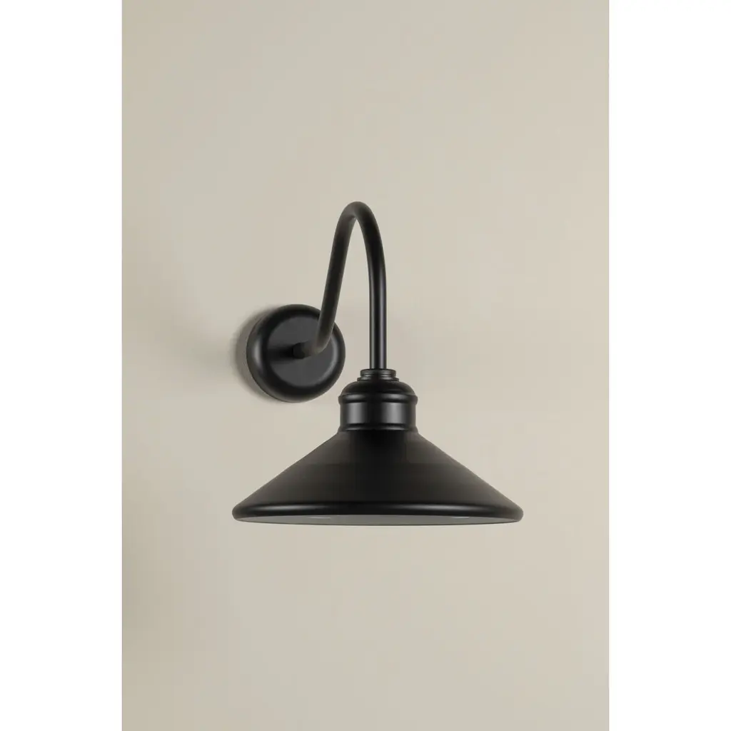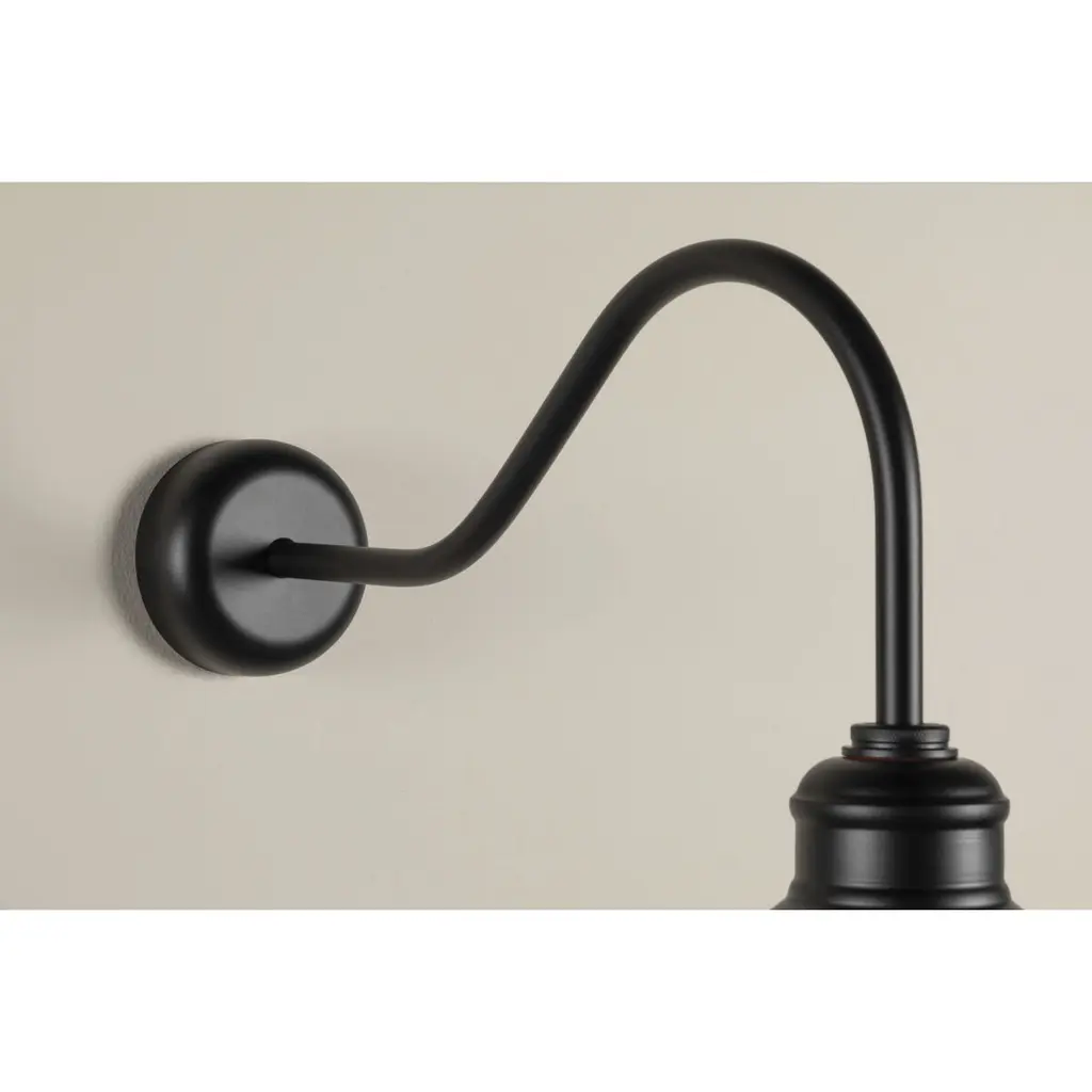 Paying homage to the 1950s, Bakersfield blends industrial style with sweeping curves. A graceful gooseneck arm supports a sharply tapered shade and caged light source. The allover Matte Black coating adds a timeless finish to this vintage-inspired exterio