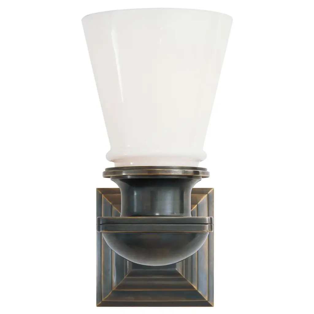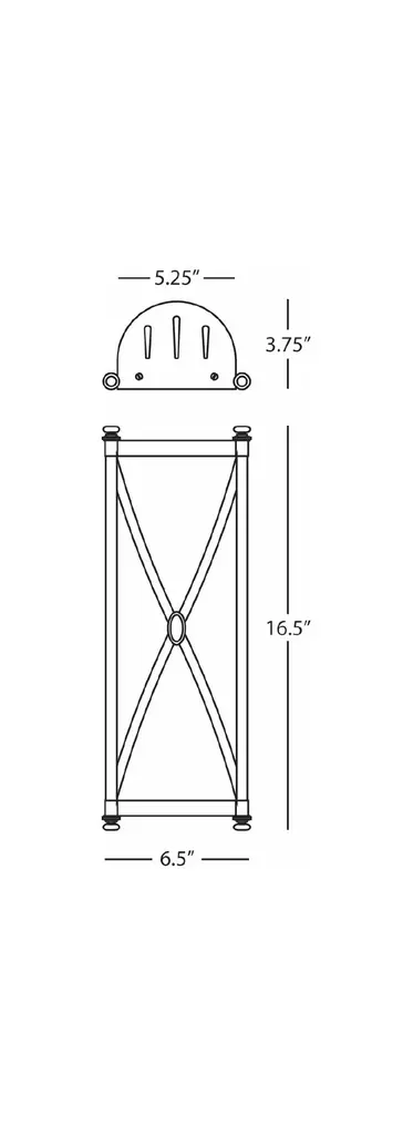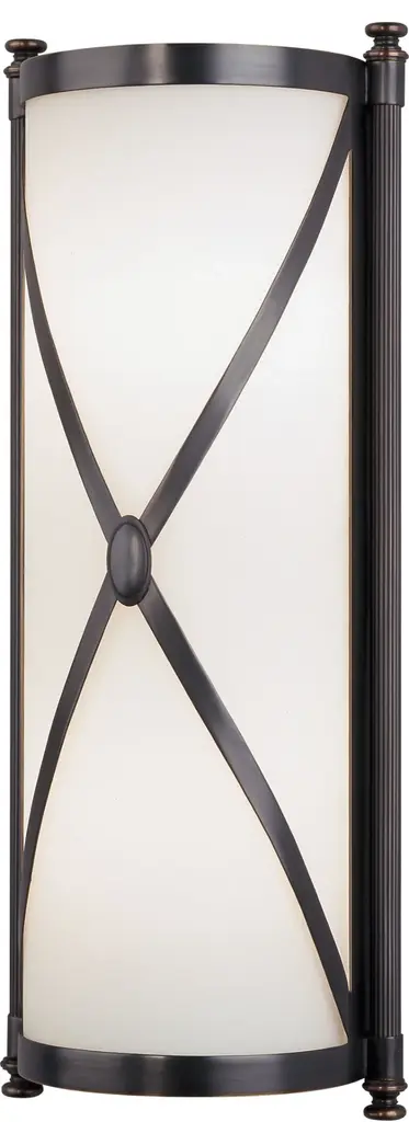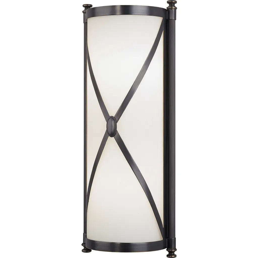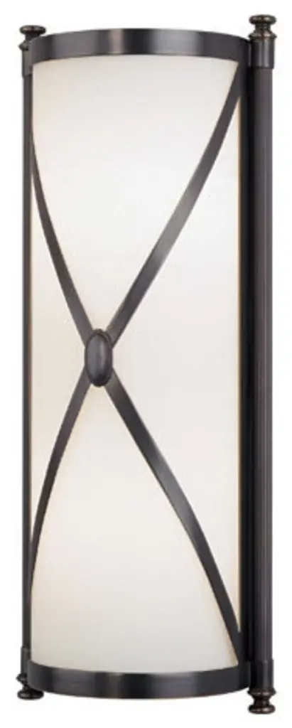 The elegant crisscross metal pattern on the framing of Chase hardwire suggests a delicate piece of jewelry to light any environment. Accented with center button detail, the wall sconces are hinged for easy bulb replacement. Available in four fine finishes; polished nickel, dark antique nickel, antique brass, and deep patina bronze. Wall sconces may be mounted horizontally or vertically and are available in three sizes: 16.5", 25.5" and 37". Features Includes a frosted white cased glass shade (2) 40 watt medium (E26) bulbs required Can be mounted horizontally or vertically UL rated for damp locations Compliant with ADA standards Dimensions Height: 16-1/2" Width: 6-1/2" Extension: 3-3/4" Product Weight: 6 lbs Shade Height: 16-1/2" Shade Width: 5-1/4" Backplate Height: 16-3/8" Backplate Width: 6-1/2" Electrical Specifications Max Wattage: 80 watts Number of Bulbs: 2 Max Watts Per Bulb: 40 watts Bulb Base: Medium (E26) Voltage: 110 volts Bulbs Included: No
