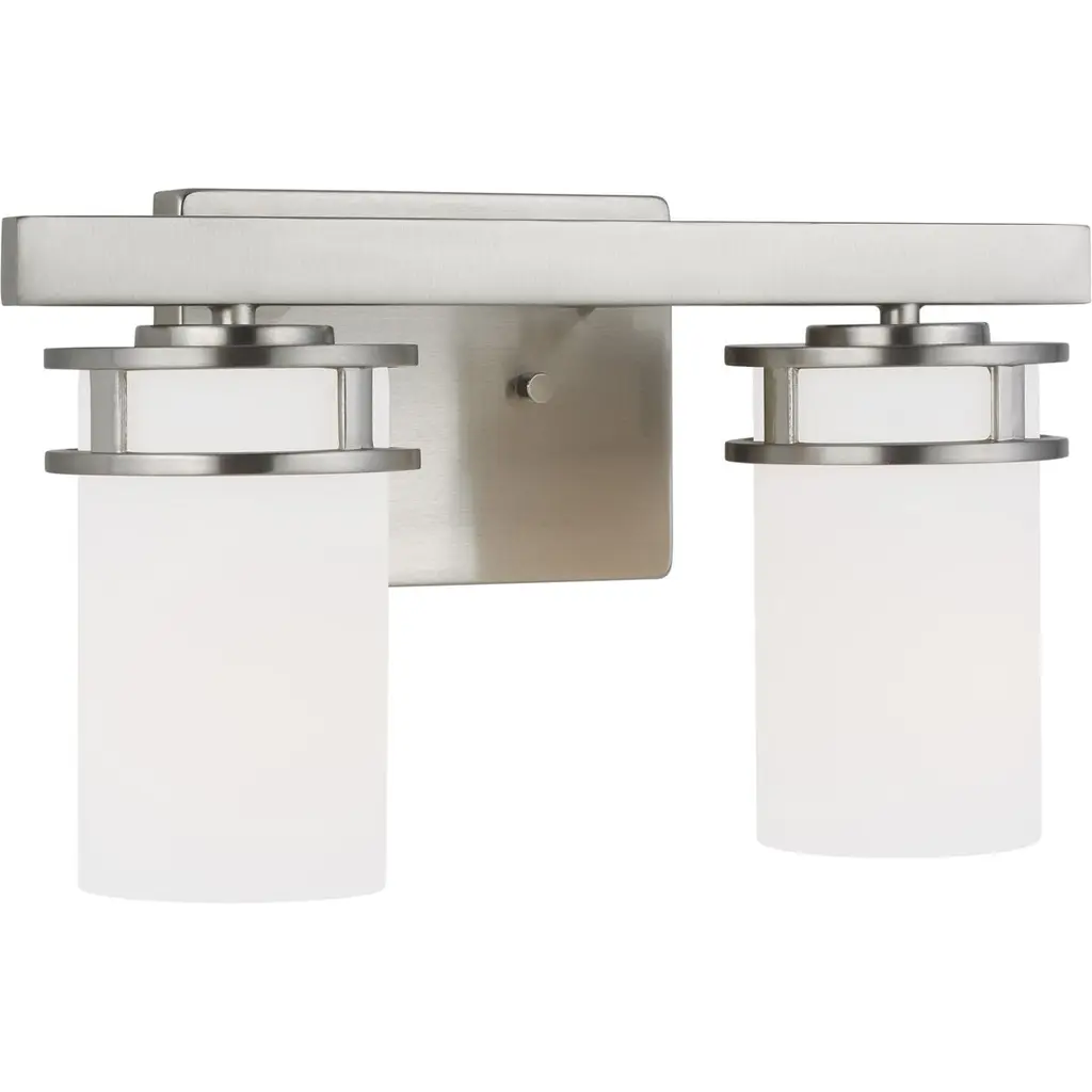 The Robie two light vanity fixture in brushed nickel is an ENERGY STAR½ qualified lighting fixture that uses LED bulbs to save you both time and money.
