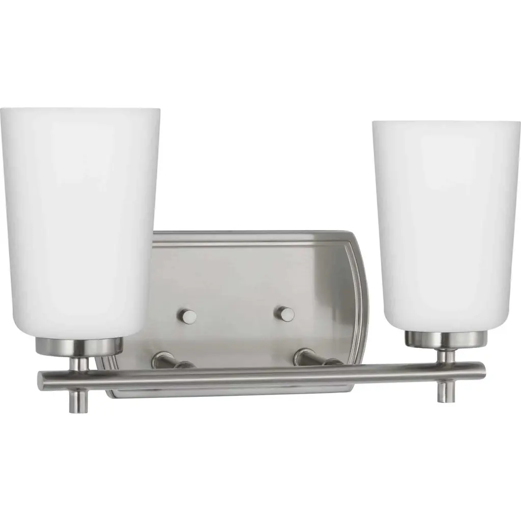 The Robie two light vanity fixture in brushed nickel provides abundant light for your bath vanity, while adding a layer of today's style to your interior design.