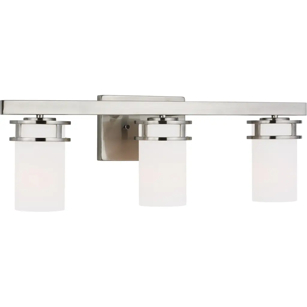 The Robie three light vanity fixture in brushed nickel provides abundant light for your bath vanity, while adding a layer of today's style to your interior design.