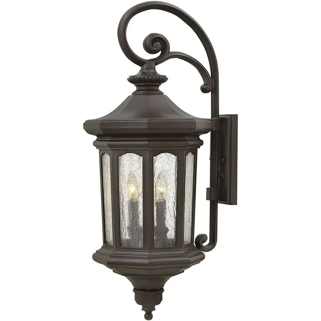 A traditional design with a modern update. the Kichler Rochdale 49514/15 Outdoor Wall Sconce is comprised of rain glass shades and a tapered design. The rain glass acts as a diffuser and adds texture to the piece. The fixture is supported by two curled strips of metal on both top and bottom, which attach to the matching backplate.