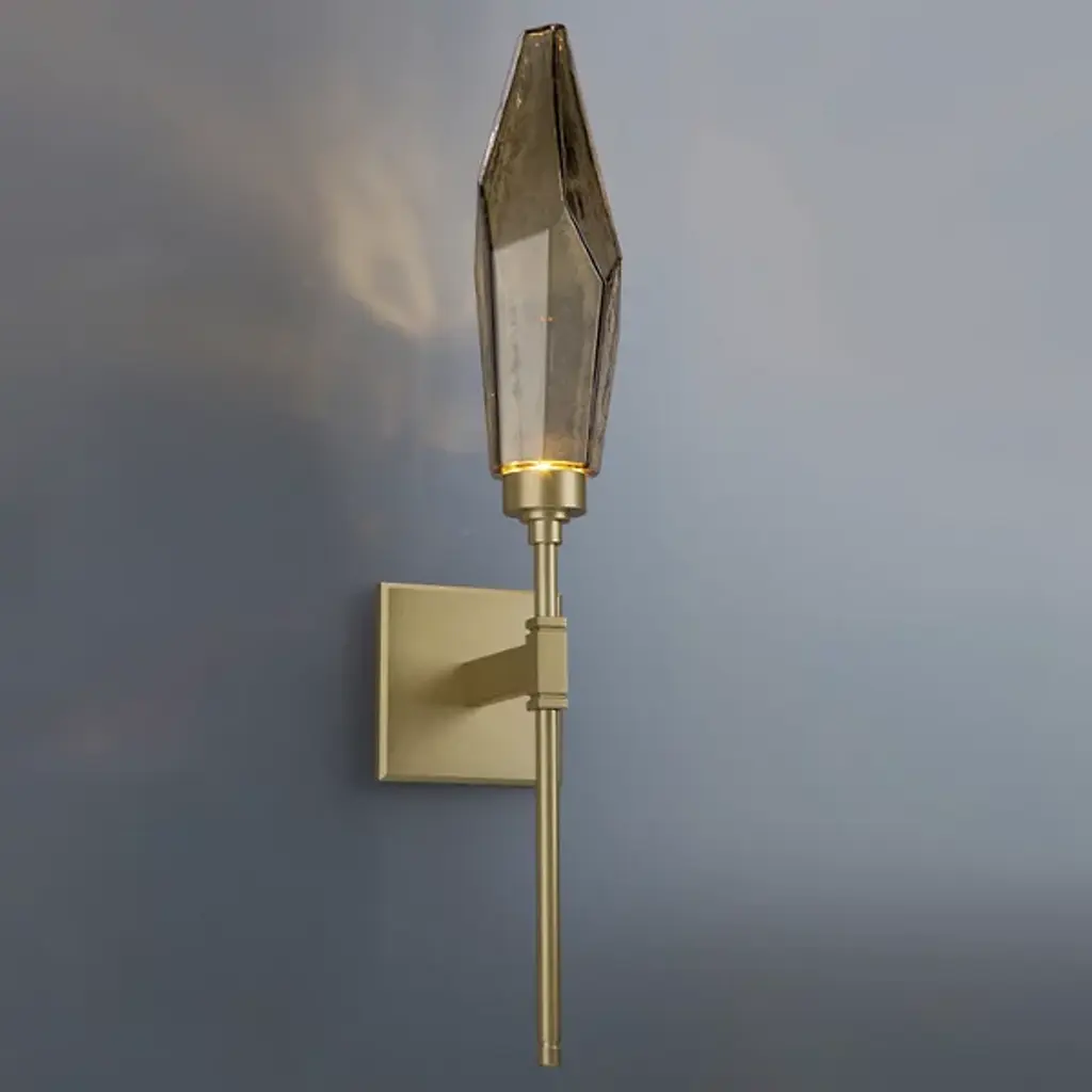 The Rock Crystal Indoor Belvedere Sconce by Hammerton Studio is a handcrafted ornate piece that also utilizes modern technology. A large glass crystal is lit with an LED light, which highlights the complexities in the glass as well as gently illuminates the space. Works great as an accent piece in a bedroom or living room.