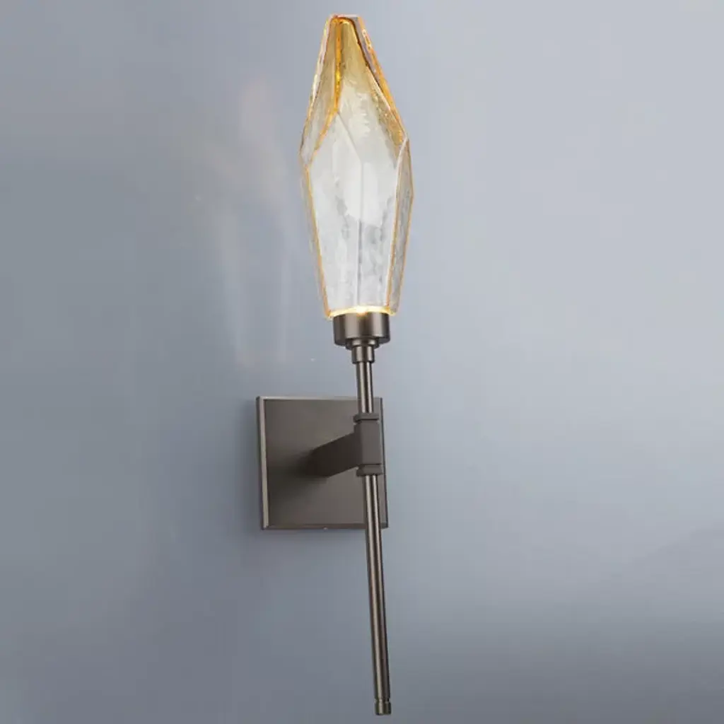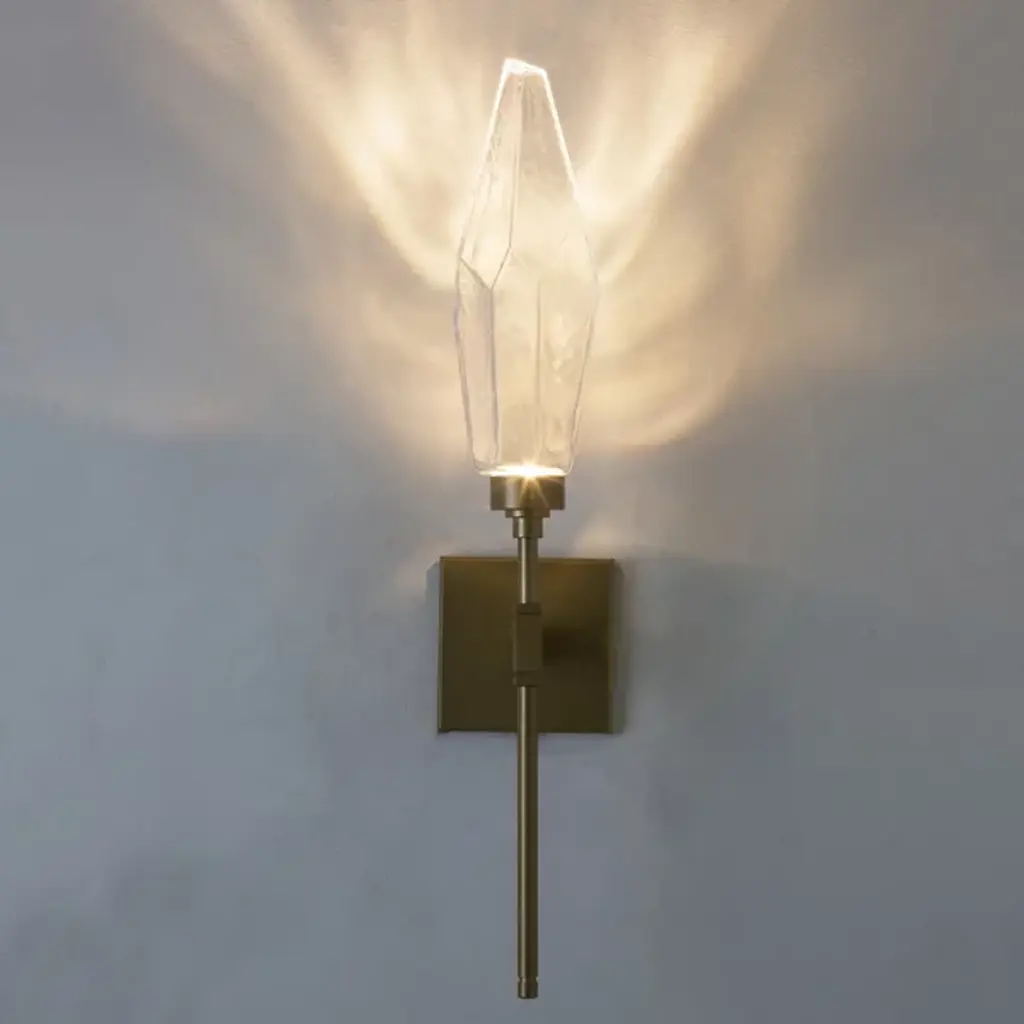 The Rock Crystal Indoor Belvedere Sconce by Hammerton Studio is a handcrafted ornate piece that also utilizes modern technology. A large glass crystal is lit with an LED light, which highlights the complexities in the glass as well as gently illuminates the space. Works great as an accent piece in a bedroom or living room.