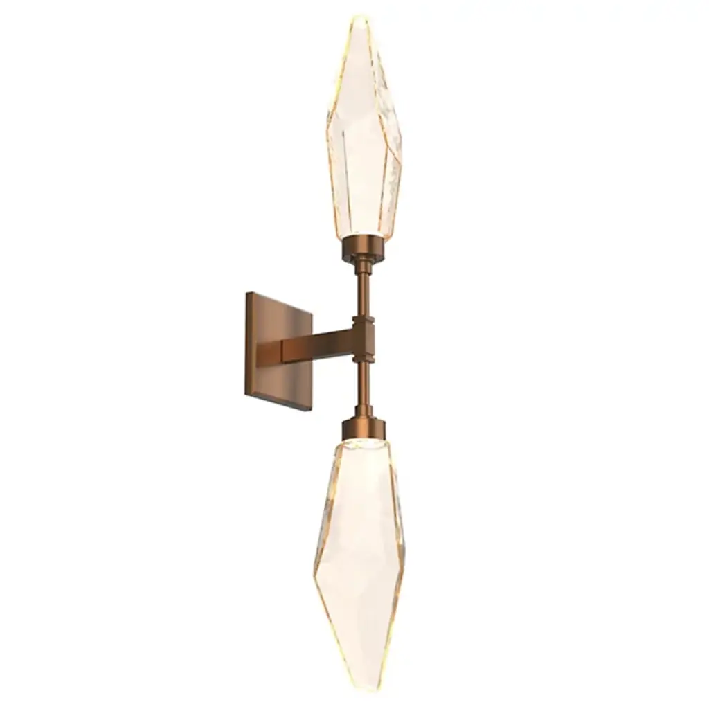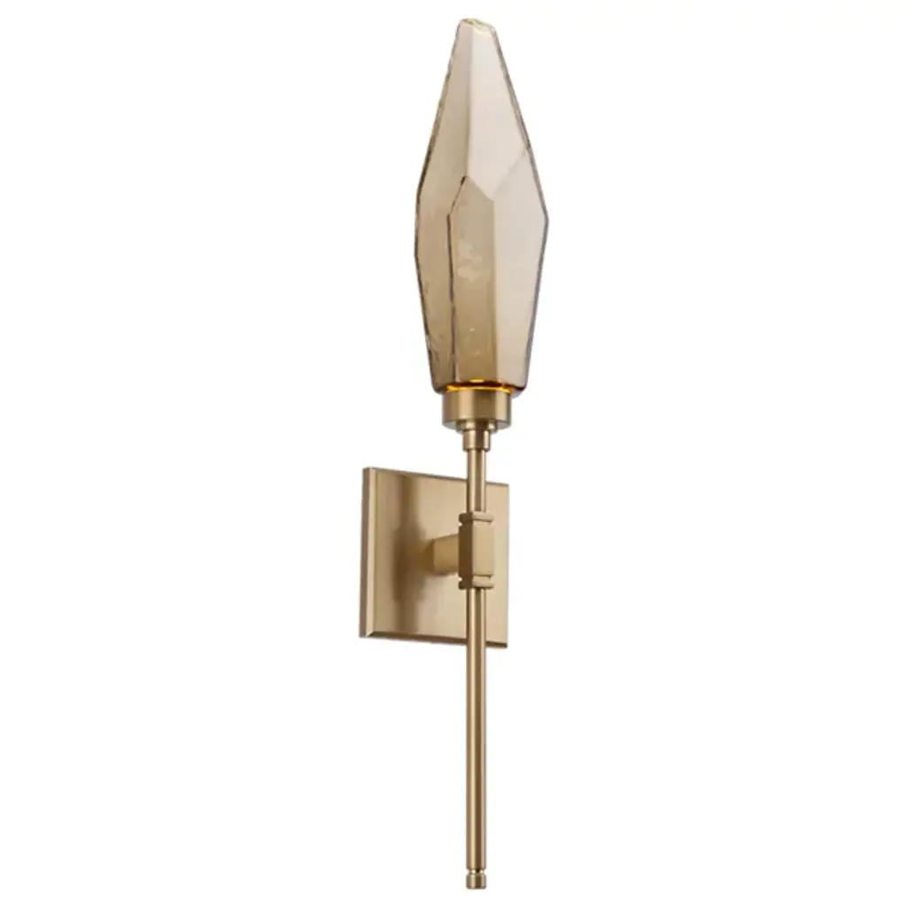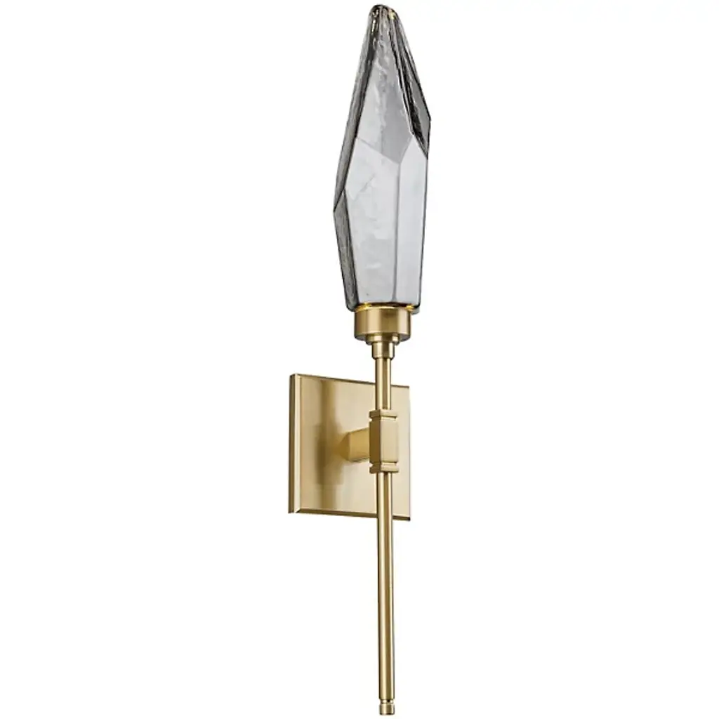 Illuminate your home with the natural beauty of the Rock Crystal LED Belvedere Wall Sconce by Hammerton Studio. Its organic shape is formed from artisan blown glass, creating a raw crystal shade that sits atop a slender metal stem. Supported by a square backplate, the fixture presents a refined and modern structure that suits a wide range of modern décor styles. An integrated LED light source at the crystal’s base emits a soft beam of light, creating a serene glow.