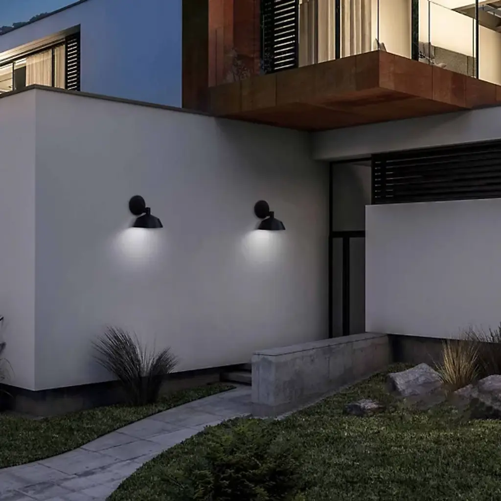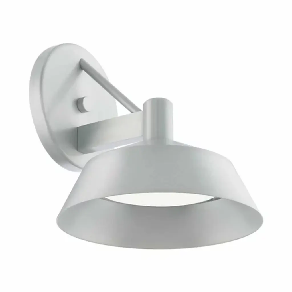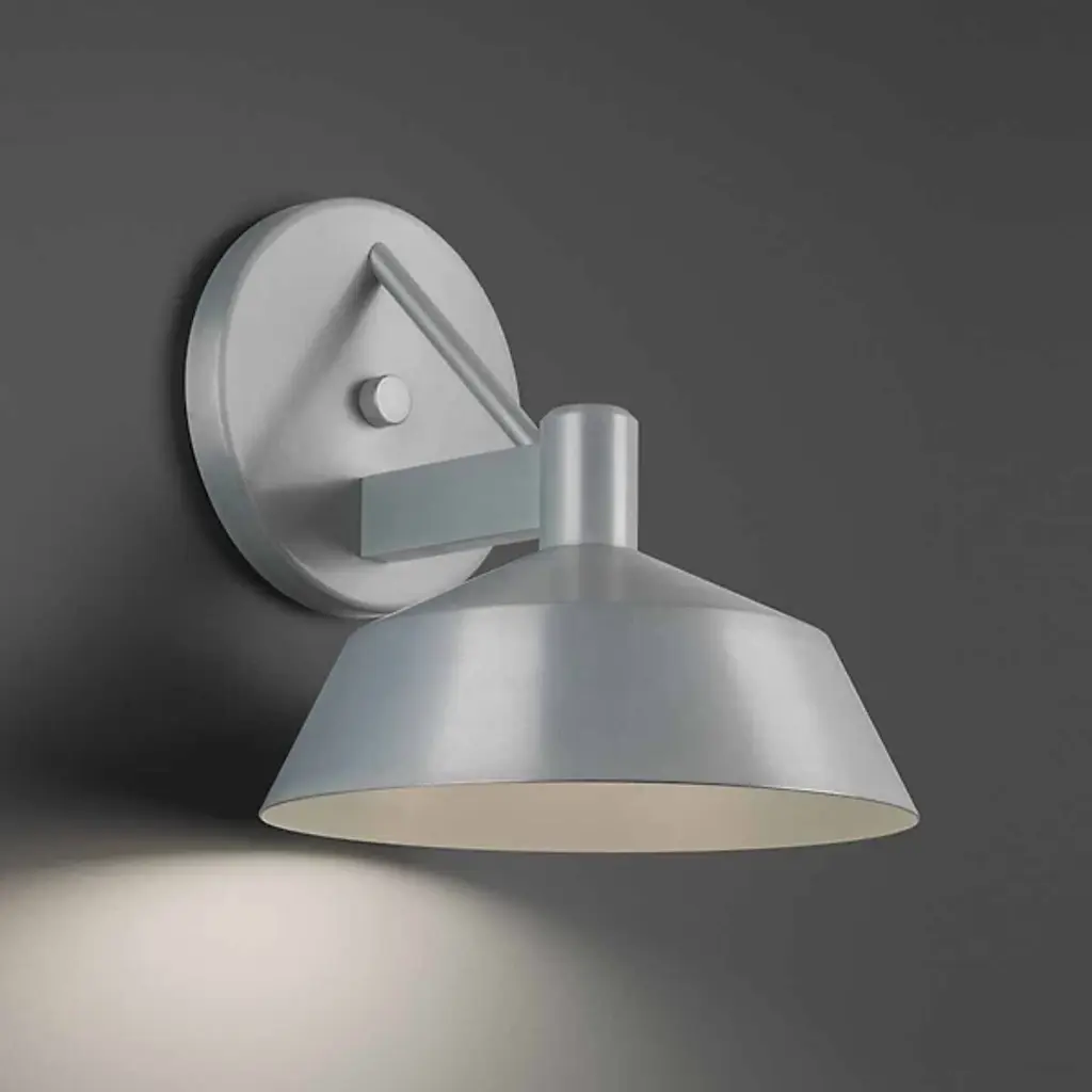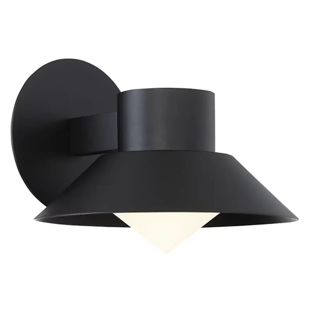 The Rockport LED Outdoor Wall Sconce by dweLED has a sleek, industrial feel, pairing a durable aluminum body and an etched acrylic diffuser together. Made to withstand the elements, this wall sconce is anchored by a round backplate and bold arm that is accented with an angled stem, giving its foundation an airy touch. The slightly flared aluminum frame helps direct a practical layer of light down onto porches and patios, and the inner diffuser both conceals and softly filters the illumination from the energy-efficient source within.