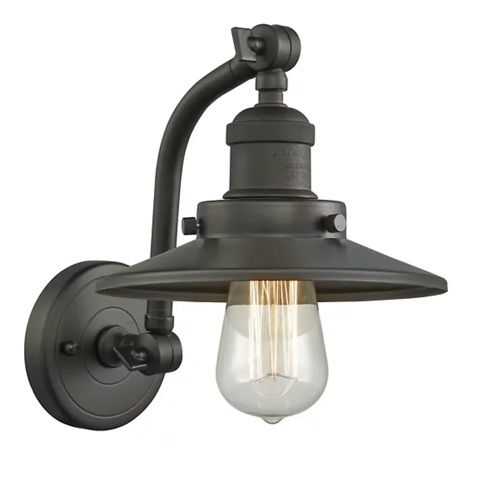 Make a lasting impression with the elegant, traditional lines of the Roman Curved Arm Wall Sconce from Alder & Ore. A Bruno Marashlian design constructed of steel and cast brass, it extends a curving arm with robust joints at each end, extending a single damp-listed socket that blooms inside a shallow dish shade. The shade is held in place by a set of small, evenly-spaced knobs and reflects a warm ambiance around the wide wash of direct downlight.