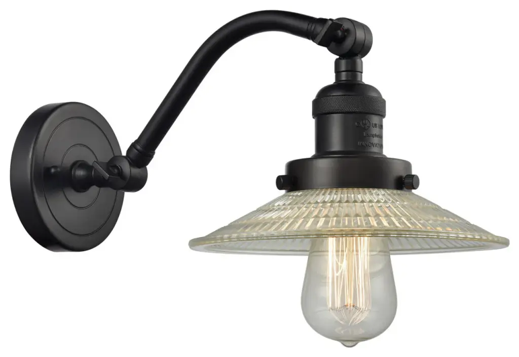 Enliven your home with the Roman Wall Sconce by Alder & Ore and you’ll be mounting up a charming contemporary fixture. A Bruno Marashlian design, it’s secured by a circular wall mount that sends out a single arm to support a robust metal socket and housing. This arrangement is damp listed and easily rotated through 180 degrees while supporting a shade secured by a series of round bolts that leaves the lamping open while focusing any illumination into a broad-reaching pool.