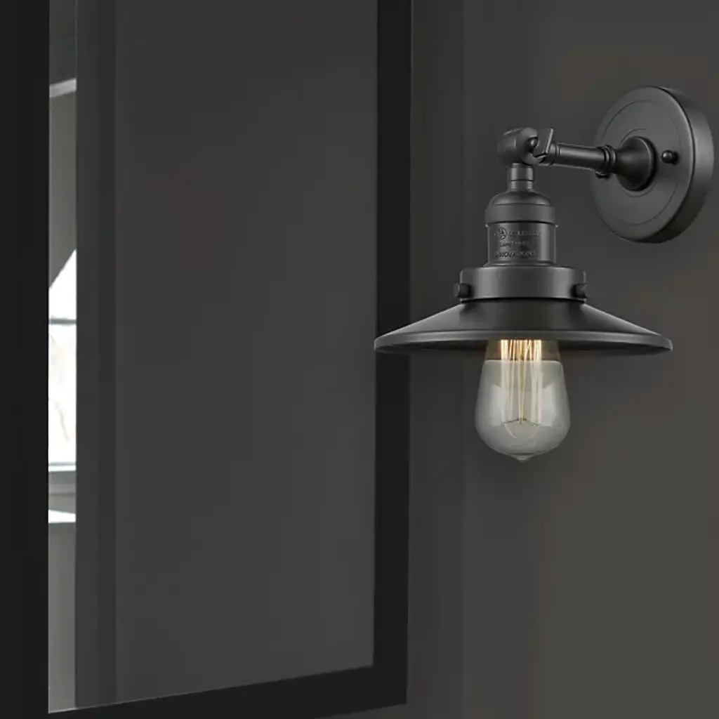 Enliven your home with the Roman Wall Sconce by Alder & Ore and you’ll be mounting up a charming contemporary fixture. A Bruno Marashlian design, it’s secured by a circular wall mount that sends out a single arm to support a robust metal socket and housing. This arrangement is damp listed and easily rotated through 180 degrees while supporting a shade secured by a series of round bolts that leaves the lamping open while focusing any illumination into a broad-reaching pool.