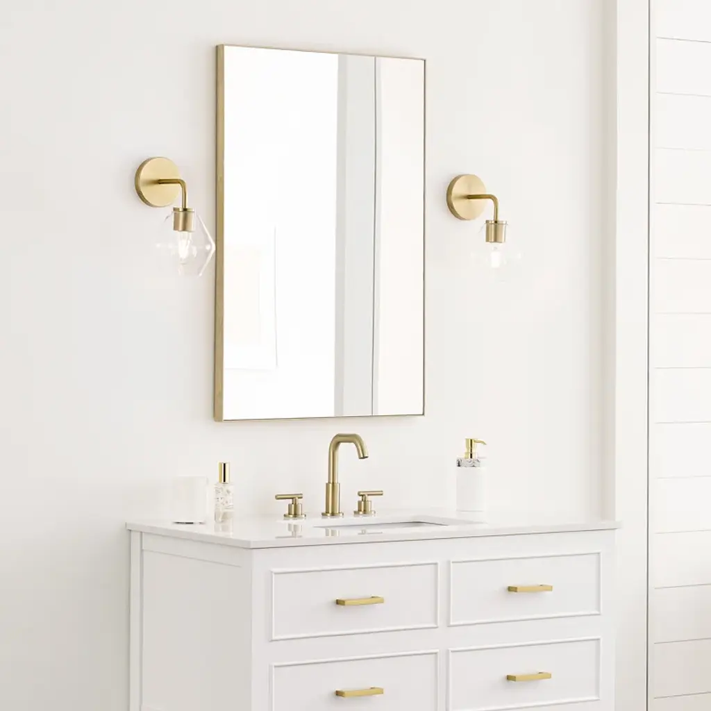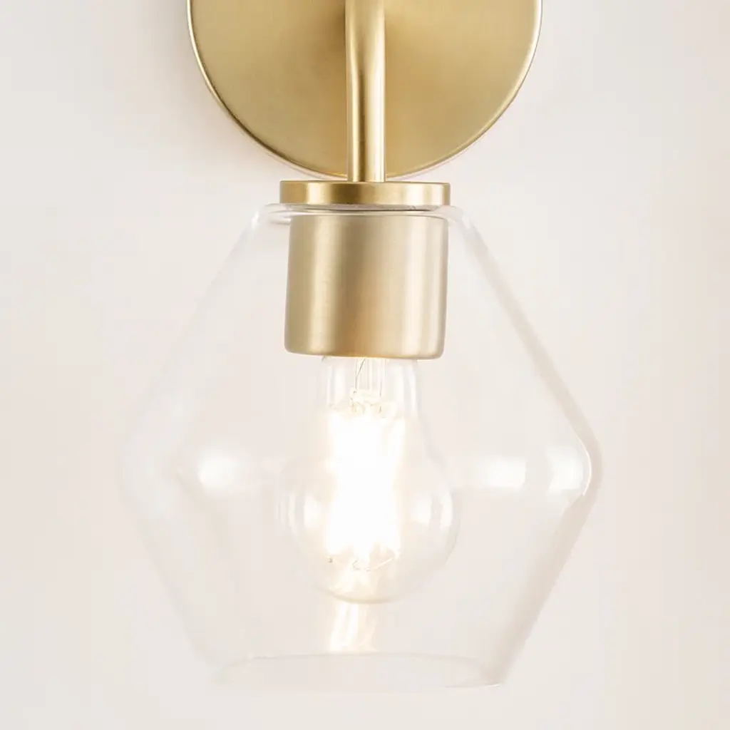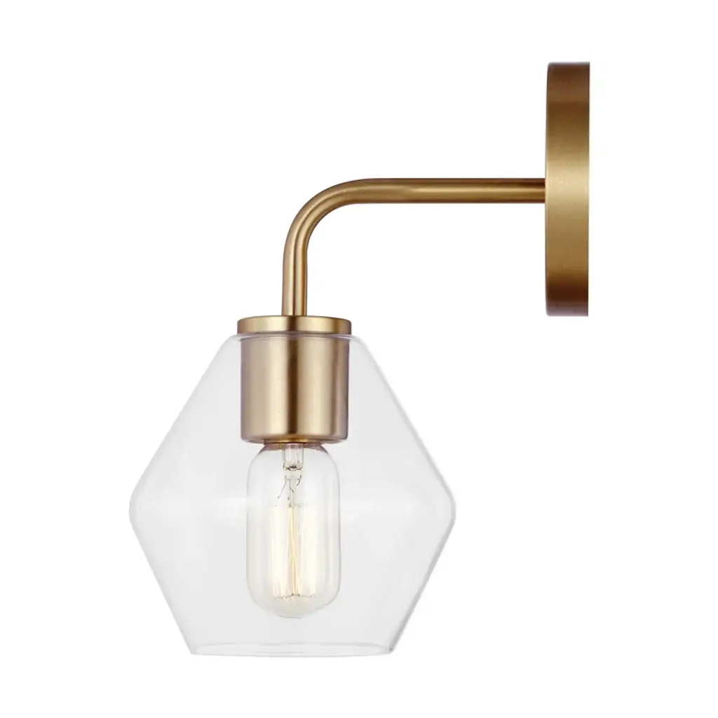 A smooth blend of rustic + industrial, this sconce light’s clear glass shade showcases a striking hexagonal silhouette. It’s built from steel, and suitable for damp locations, like a bathroom. Install it with a dimmer switch to easily set the vibe in your space.
