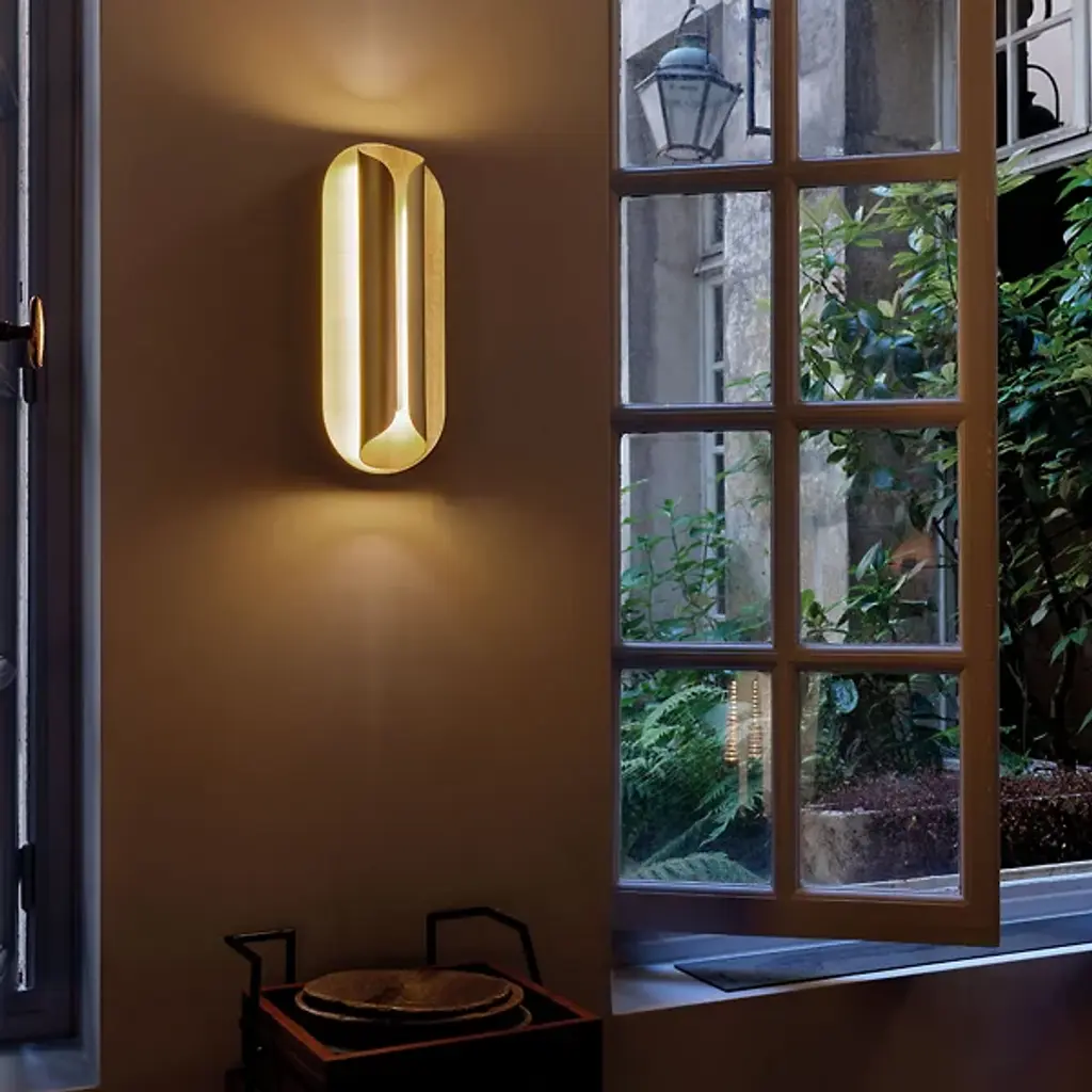 Clean, calculated curves. The Rosalie LED Wall Sconce from DCW editions features a rhythmic design created to enhance the atmosphere in both the off and on setting. Architect and designer Julie Fuillet joins with light designer Emeric Thienot to create a piece that combines their technical background. The sconce’s architectural personality shows in its solid aluminum construction. It sits against the wall with a low profile to create harmony with the space. Thienot’s background in generating a lighted atmosphere reflects in the indirect light source of the central tube. LED light streams out the tube as a vertical ambient glow against the wall. The light gives the edges of the metal a sleek silhouette.