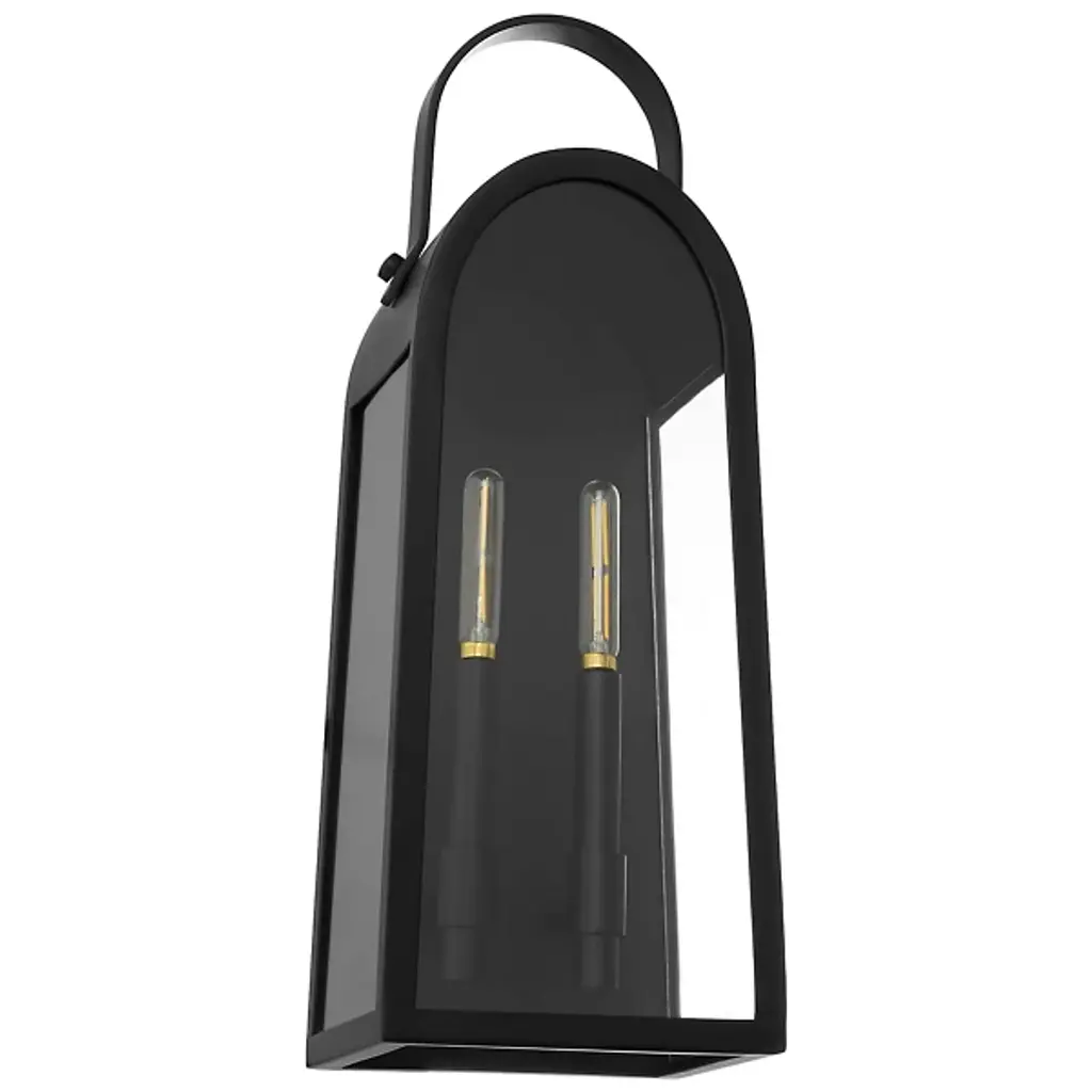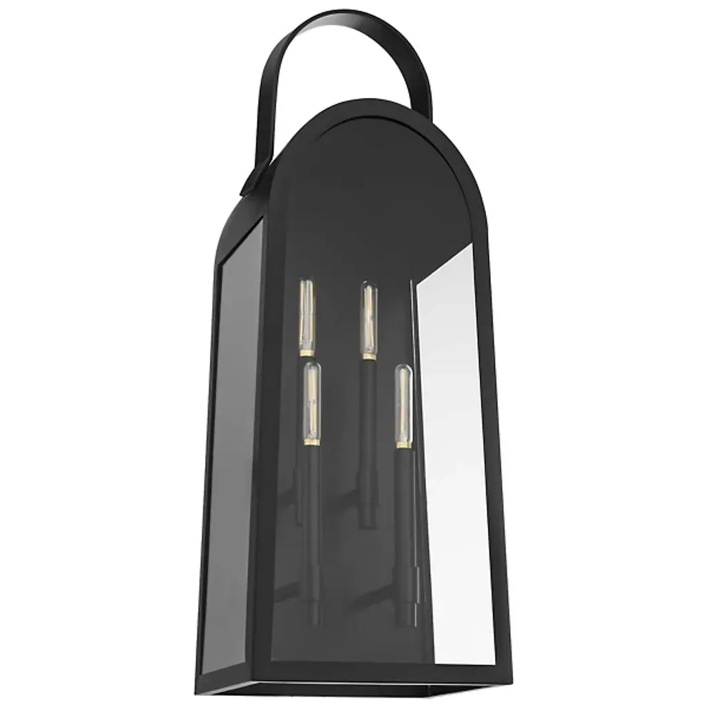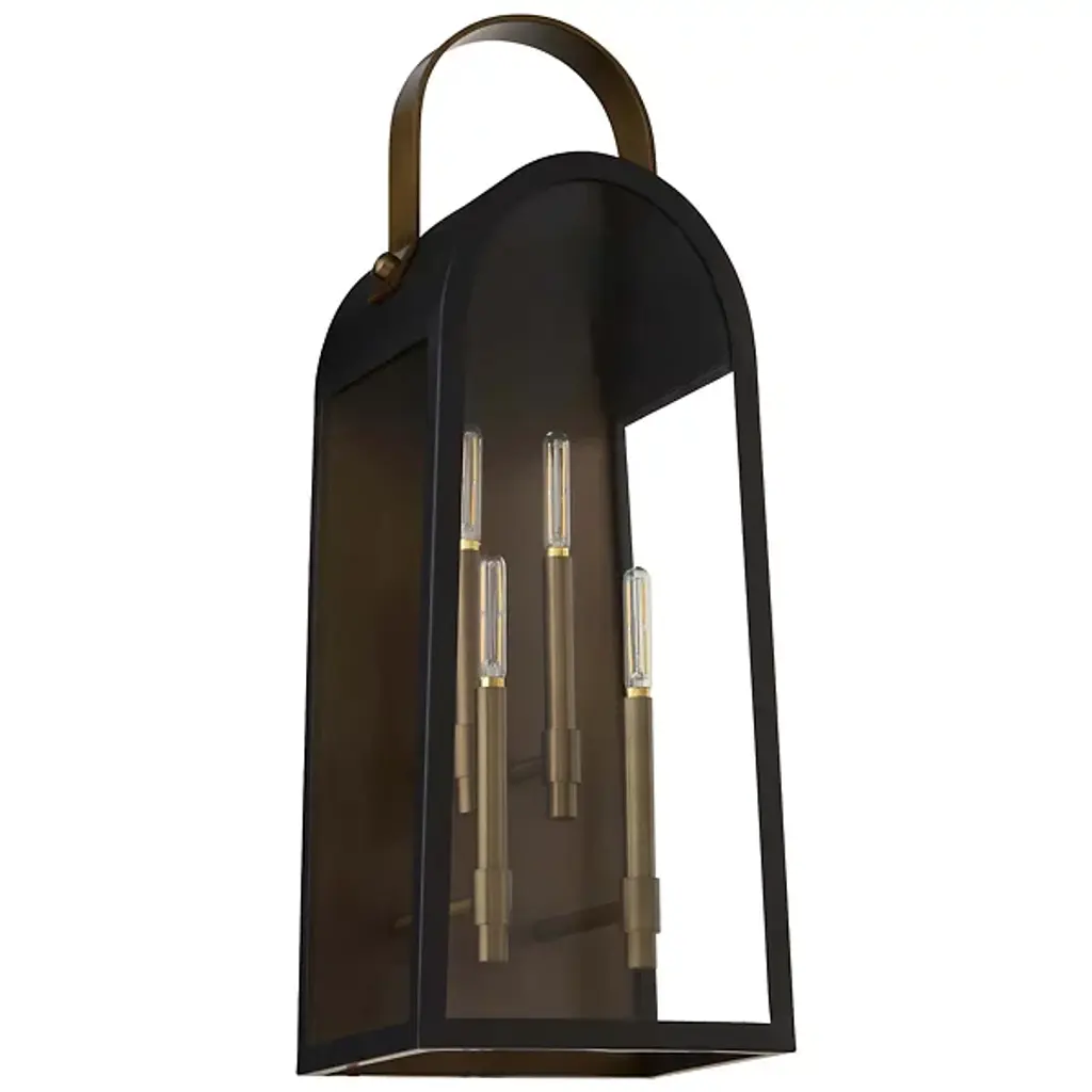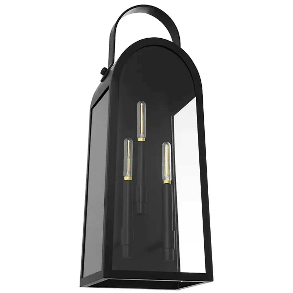 The Rossi Outdoor Wall Sconce from Quorum International brings lantern-inspired charm to outdoor spaces. Clear glass panels showcase staggered bulbs mounted on tubular stands, creating depth within the rectangular frame. The curved handle detail adds a traditional touch to the modern interpretation. This wet-listed fixture brightens entryways, patios, and garden paths while maintaining its pristine appearance in outdoor conditions. Its dimmable functionality lets you customize the lighting to suit your space.