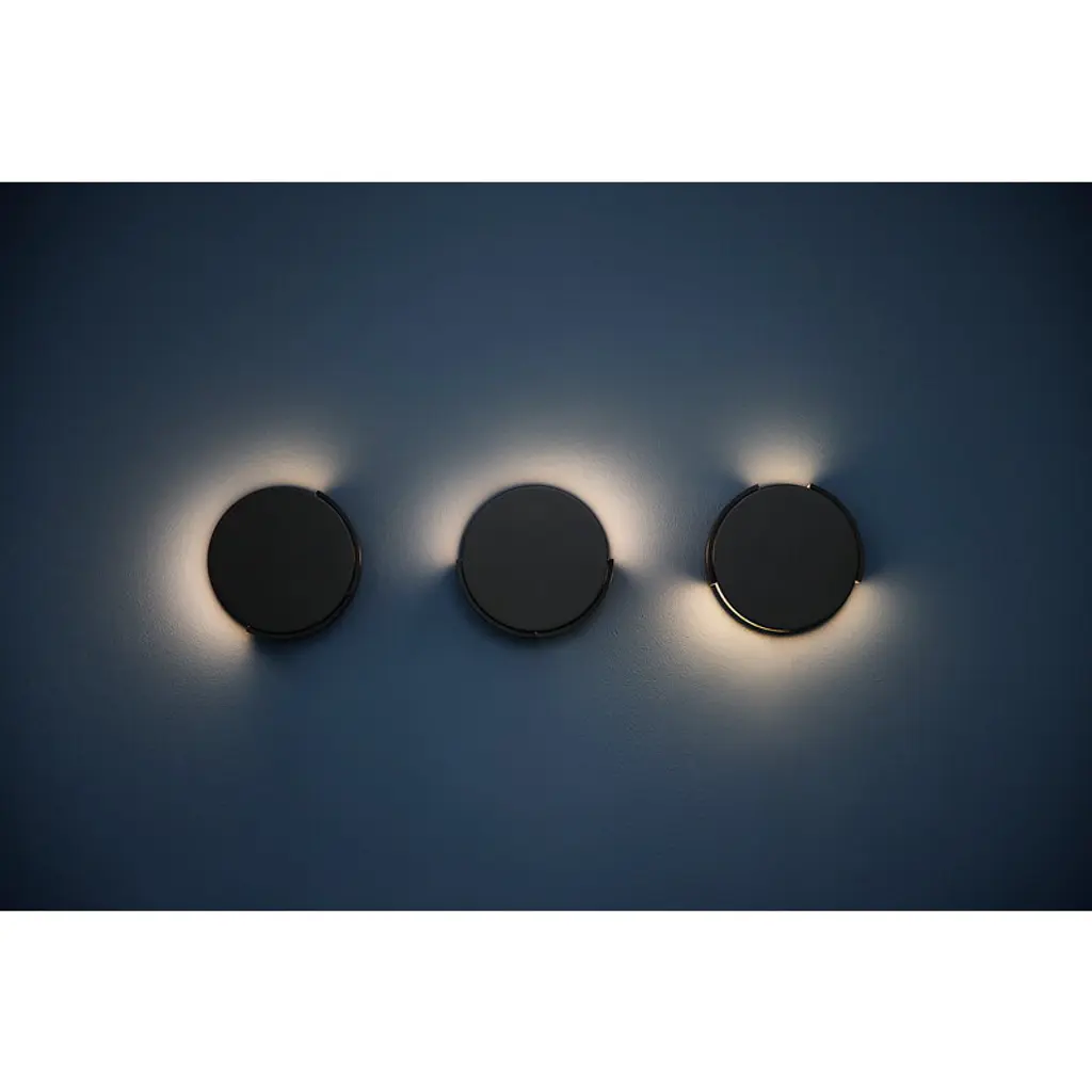 Frandsen’s Rotate wall lamp invites you to explore the endless interplay of light and shadow. Designed by Thomas Albertsen, this disc-shaped wall lamp casts light around its edges through the openings of its metal casing. With adjustable side panels, you can easily direct the light wherever you wish. This makes the lamp an ever-evolving piece of art that, despite its modest design, is capable of enveloping even large walls in a captivating glow. The minimalist Rotate wall lamps fit effortlessly into a wide range of spaces, from hallways to kitchens, workspaces, and bedrooms. Their compact metal form also shines when arranged in groups for a striking effect.