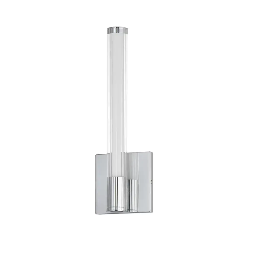 Add stately modern appeal to indoor walls with contrasting construction of the Round LED Wall Sconce from Minka-Lavery. A square wall plate secures the fixture, sending up an acrylic cylinder shade from a round housing, the matte steel surfaces contrasting with the glossy diffuser, which transmits a warm, welcome ambiance. The entire ensemble is capped off by a rounded disc head with the same matte surface as the support structure, the striking design shining next to a vanity mirror or near a doorway.