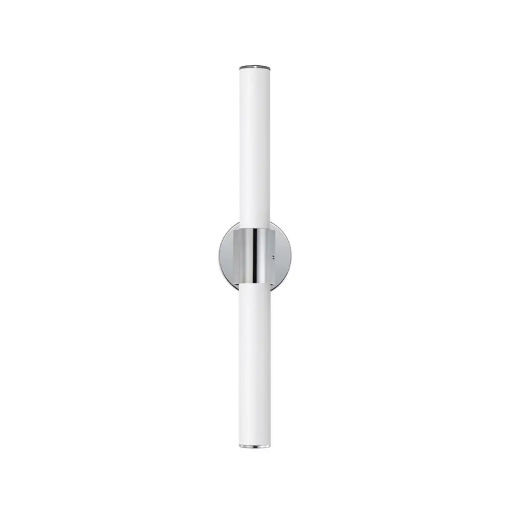Add stately modern appeal to indoor walls with contrasting construction of the Round LED Wall Sconce from Minka-Lavery. A square wall plate secures the fixture, sending up an acrylic cylinder shade from a round housing, the matte steel surfaces contrasting with the glossy diffuser, which transmits a warm, welcome ambiance. The entire ensemble is capped off by a rounded disc head with the same matte surface as the support structure, the striking design shining next to a vanity mirror or near a doorway.
