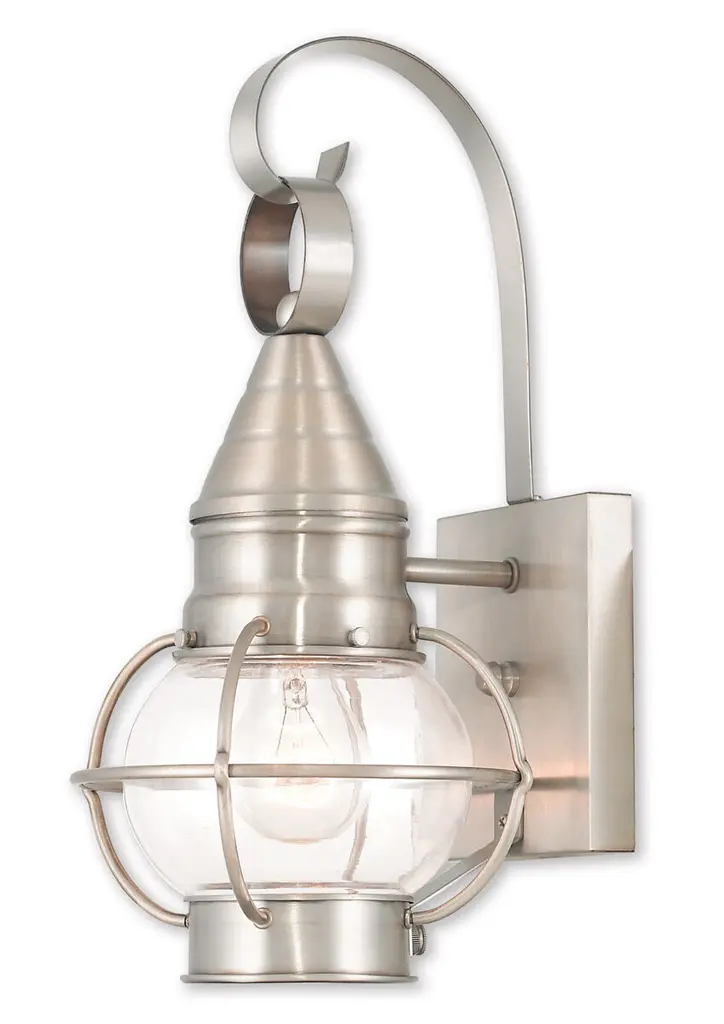 Round Onion 3 Light 35 Inch Dark Antique Brass Outdoor Wall Light In Clear Seedy Glass, Three 60w Candelabra
