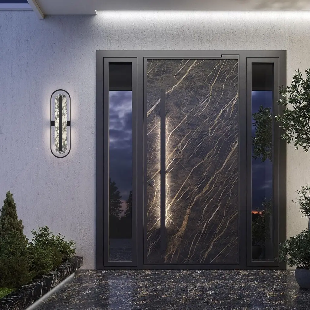 The Roundabout LED Sconce is a soft contemporary masterpiece, seamlessly blending luxurious marble with a meticulously crafted frame to create an unforgettable statement piece. Balancing natural elegance with architectural precision, it serves as a striking focal point in any space. Designed for both interior and exterior use, this sophisticated fixture is wet location rated and features 3-CCT customizable lighting, dimmable functionality, and a refined blend of materials that enhance both classic and modern settings.
