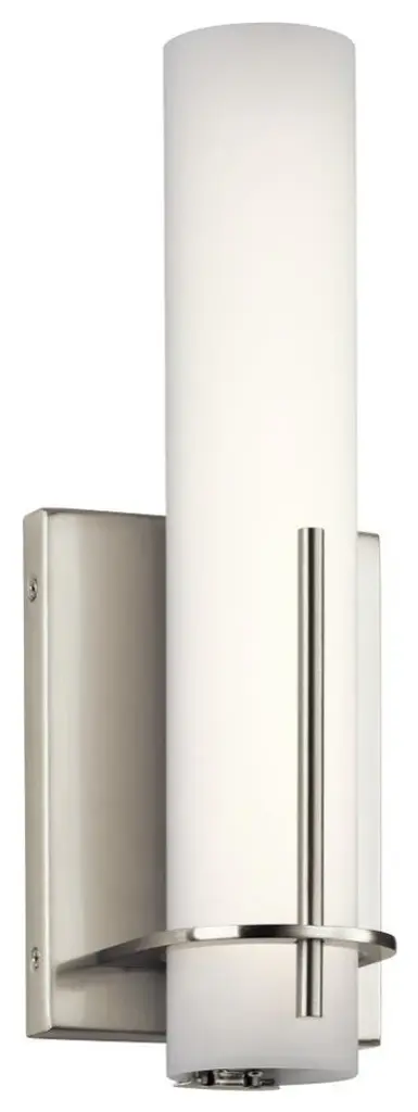 Give your layout an ultra-sleek design with the Rousseau Bracketed LED Wall Sconce by Visual Comfort Signature, formerly known as Visual Comfort. A cylindrical brass rod attaches to an ovular backplate at your wall. This rod maintains a vertical orientation which makes the sconce well-suited for placement near your home entrance. LED light projects from a shade of etched glass, providing radiant light for your living arrangement. The sconce comes in multiple sizes so that you may choose the fixture that is right for you.