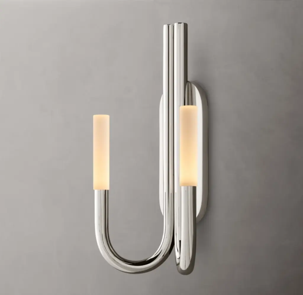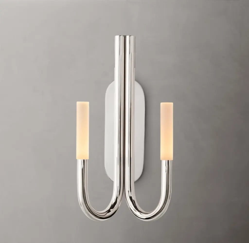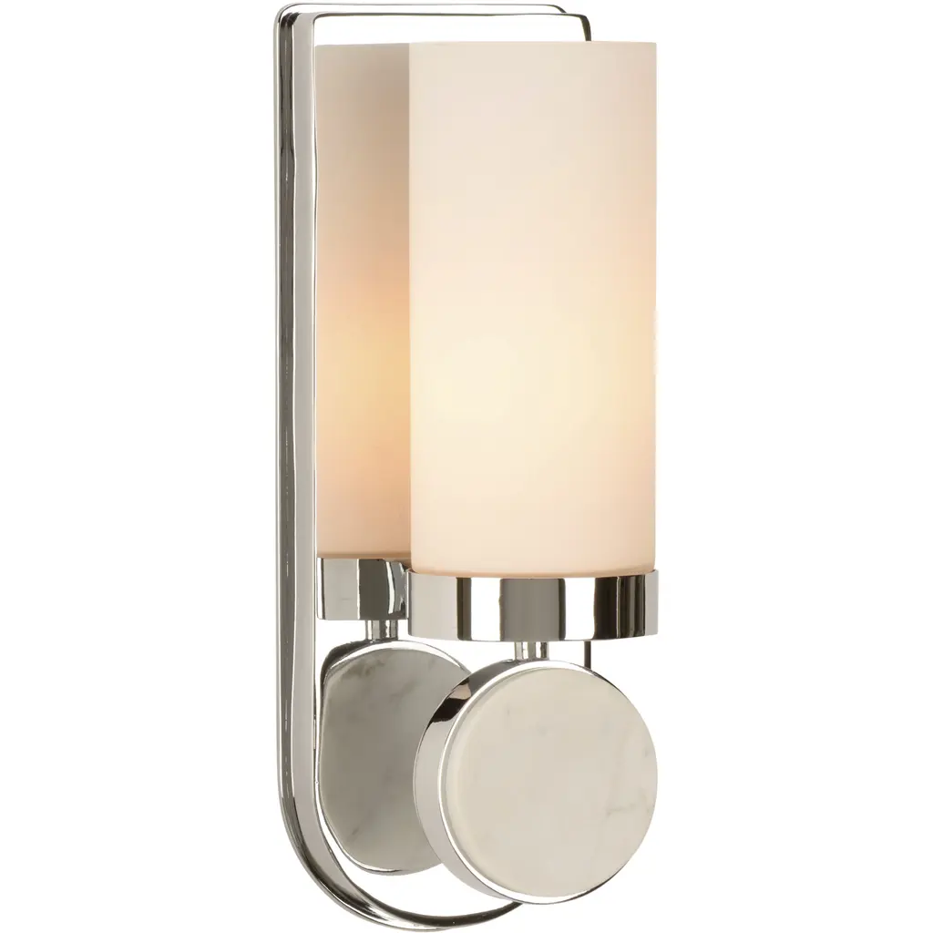 Inspired by minimalist midcentury Italian design, our contemporary interpretation of the sconce offers reductionist form in a striking silhouette. Spare and understated, Rousseau's gracefully upraised arms hold aloft an etched glass shade fitted with an integrated LED bulb. When lit, the fixture emits a warm, filtered glow. SHOP THE ENTIRE COLLECTION