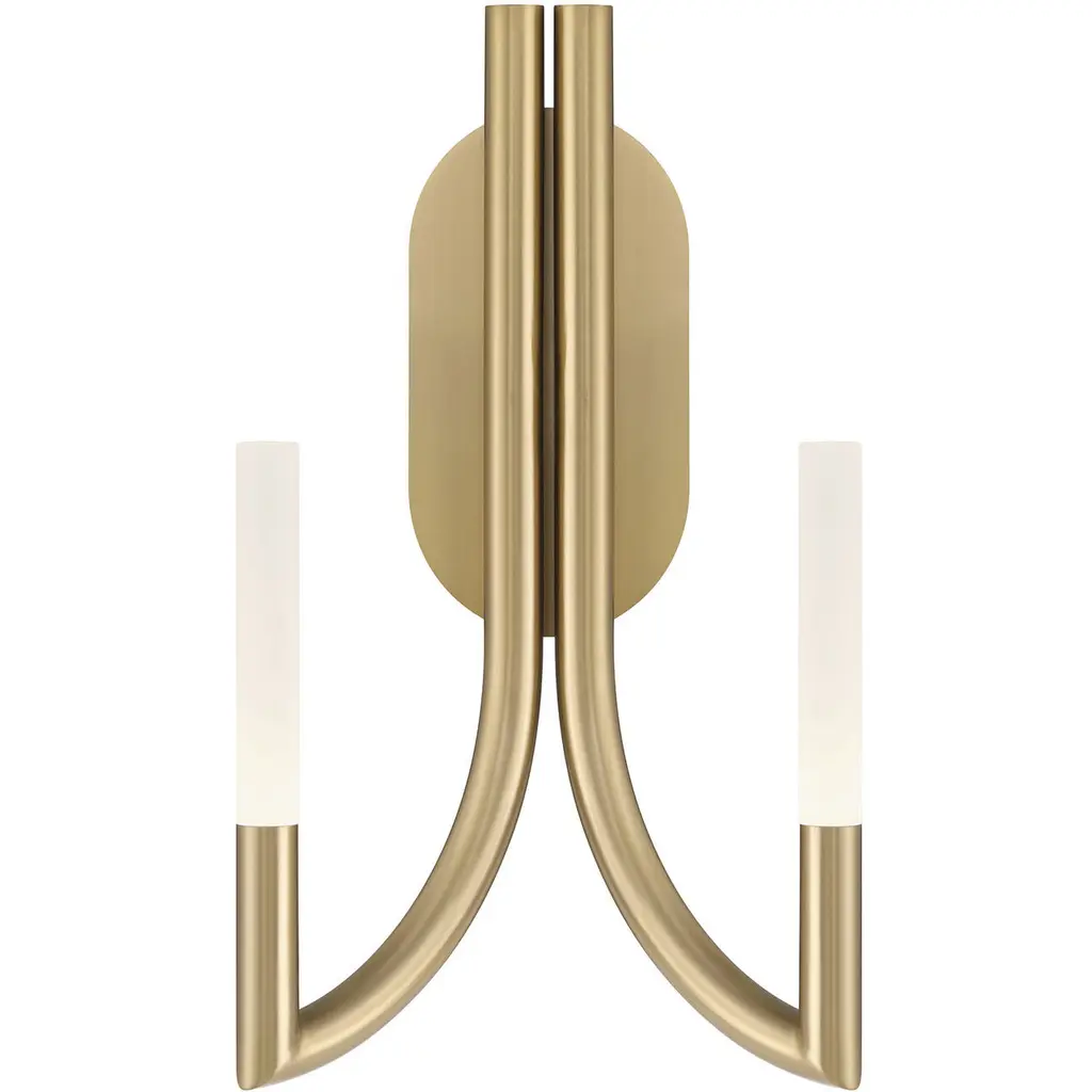 Give your home a classy appeal with the Rousseau LED Double Wall Sconce by Visual Comfort Signature, formerly known as Visual Comfort, An ovular brass backplate secures to your wall allowing a pair of metallic rods to easily connect. The metalwork readily splits so that each end of the sconce loops into cane-shaped formations at the sides. A pair of cylindrical shades are equidistantly spaced so that brilliant light can project throughout your decorative arrangement with ease.