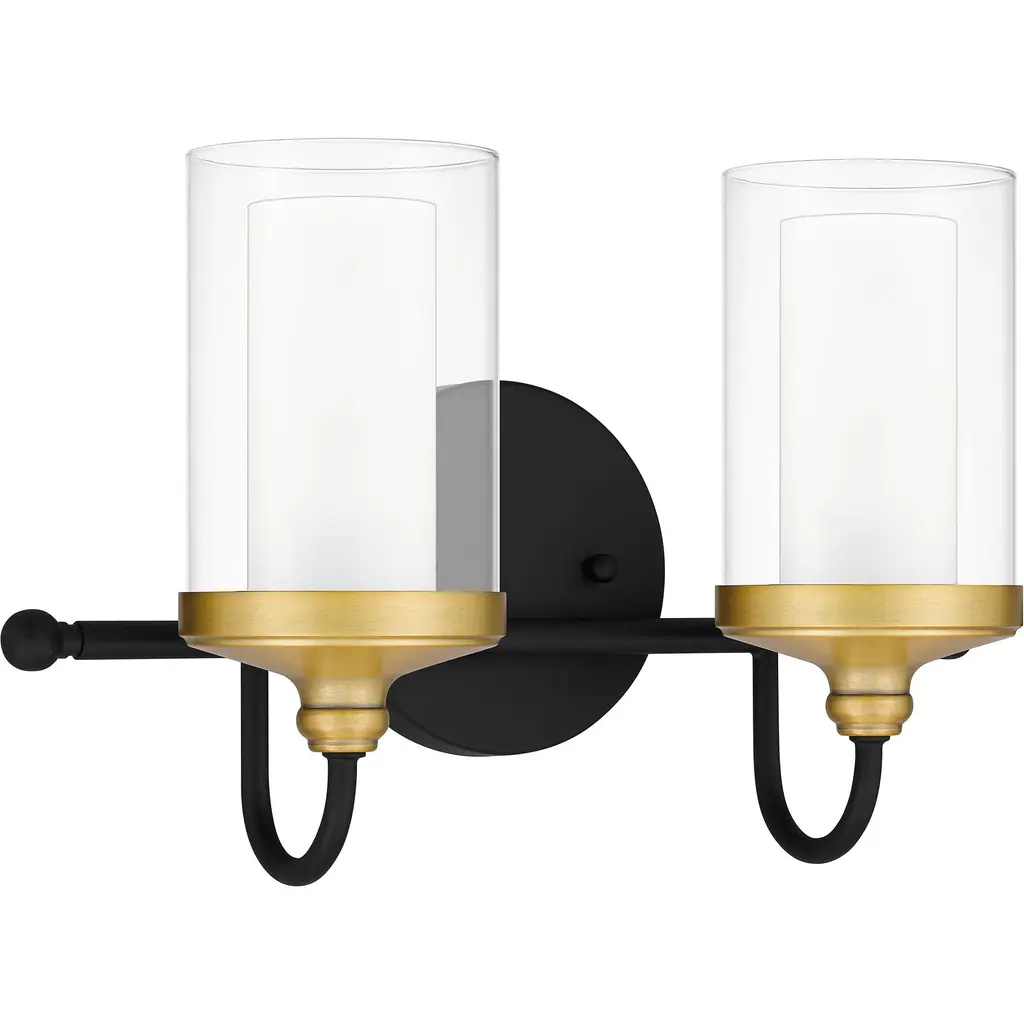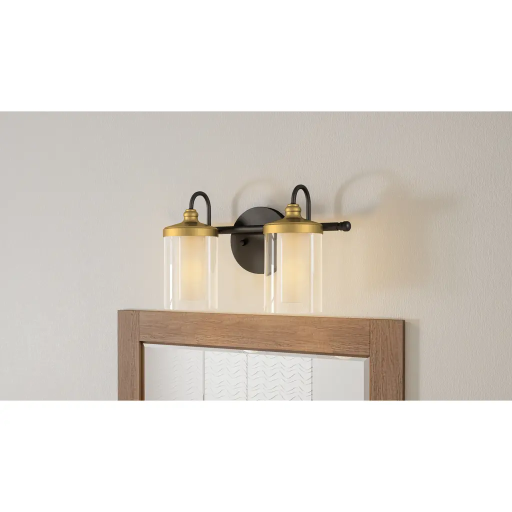 Available in either two, three, or four bulbs, the Rowland bath light can be positioned up or down to cast a unique illumination. This light, inspired by a modern farmhouse aesthetic, combines a matte black finish with brass-toned details. Clear glass shades beautifully maximize light.