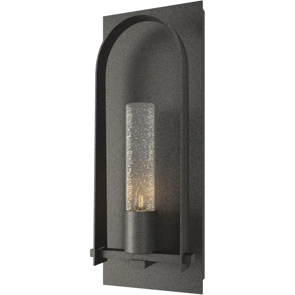 As though plucked from an ancient monastery, the bestselling Rowland Wall Sconce achieves a sense of rustic allure given the raw materials that make up its profile and the stylish minimalism it exhibits. A single bulb provides the light source from within the body, the Portland finish on the concrete and the aged steel finish on the wrought iron working in concert to provide this fixture a timeworn feel. This sconce is certified for damp locations.