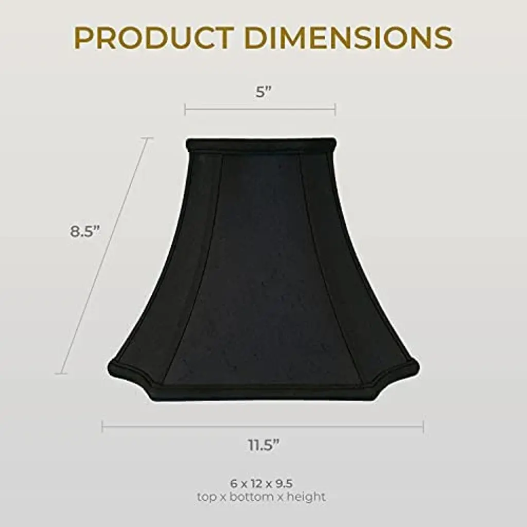 This Flare Bottom Outside Corner Square lamp shade is a part of Royal Designs, Inc. Royal Designs has been in the lamp shade business since 1993 with their multiple shade lines that exemplify handcrafted quality and value. Our basic lamp shades collection is perfect for anyone looking for simple yet stunning lamp shades. The lamp shades are available in a variety of shapes, sizes, colors, and styles. Our basic shades will blend into your home or office interiors and act as an intriguing decor piece. Take a pick from our Cut-corner or the elegant V-notch style, to add the touch of the appealing atmosphere for either reading, romance, or dining.. Specification: Brand: Royal Designs, Inc. Type: Square Lamp Shade Material: Fabric Shape: Square Color: Black with Gold Size: 5 x 10 x 8 inchs Bulb Type: Incandescent Max Bulb Wattage: 100 watts