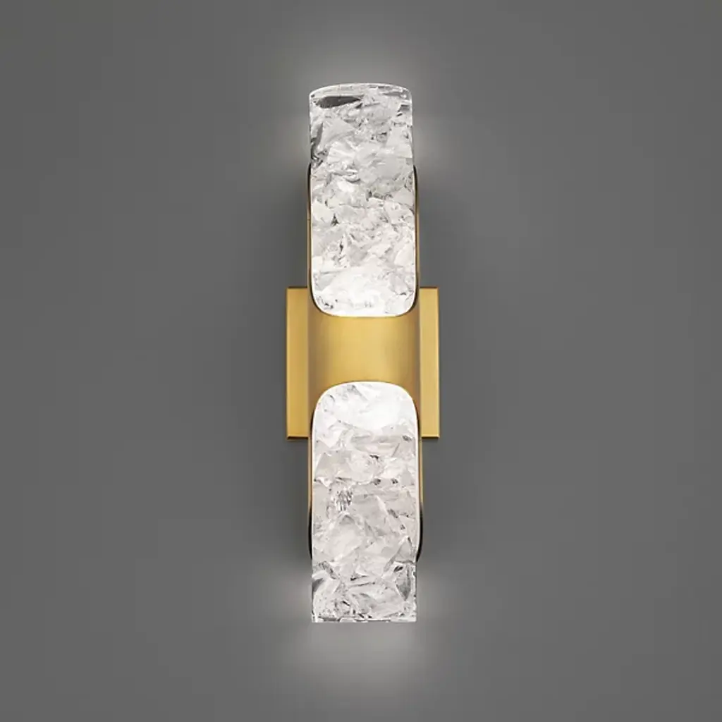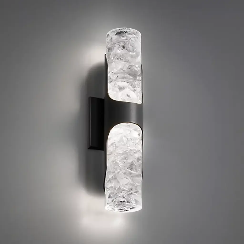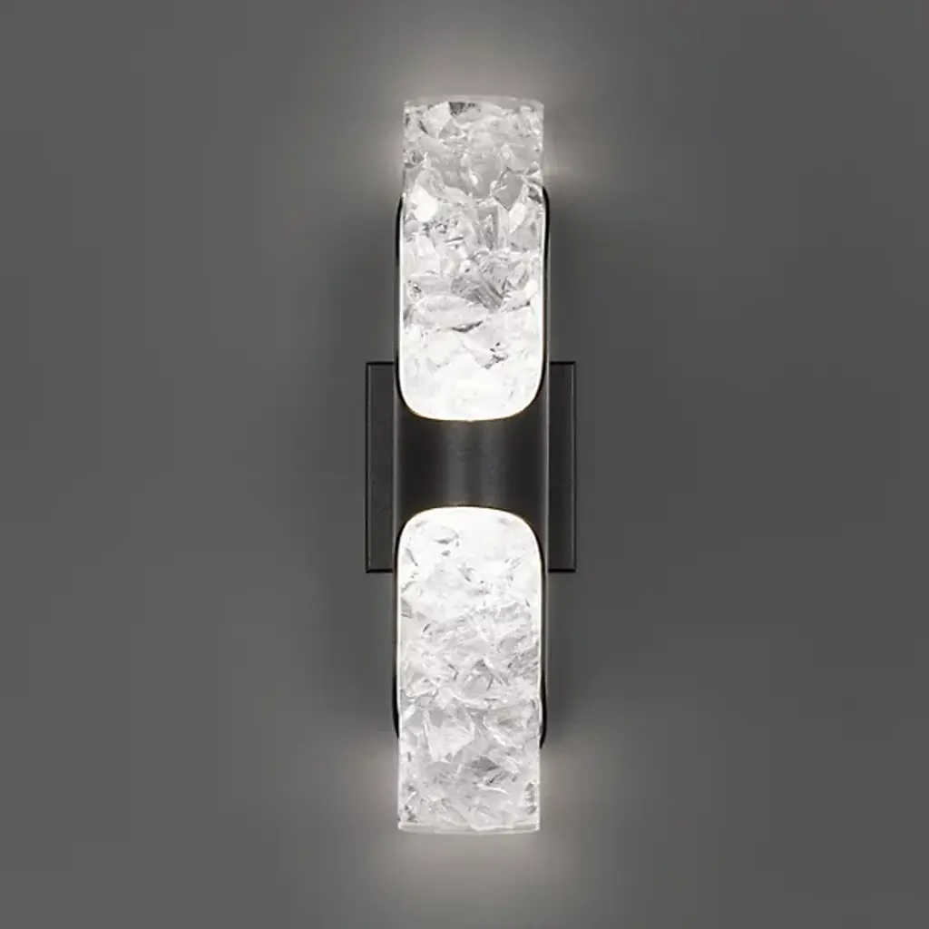 The Royce LED Wall Sconce from Modern Forms encases tiny shards of reclaimed K5 crystal within a reflective white housing that amplifies the sparkling illumination effects. A curved metal envelope secures the crystal-filled shade, subtly reflecting light patterns across the surrounding surfaces. The reclaimed crystal shards catch and scatter LED light into dynamic patterns that shift as the viewing angle changes. Wall or ceiling mounting flexibility accommodates different installation needs, while the curved metal frame adds sculptural interest. The crystal fragments create prismatic light displays that transform static illumination into active visual texture.
