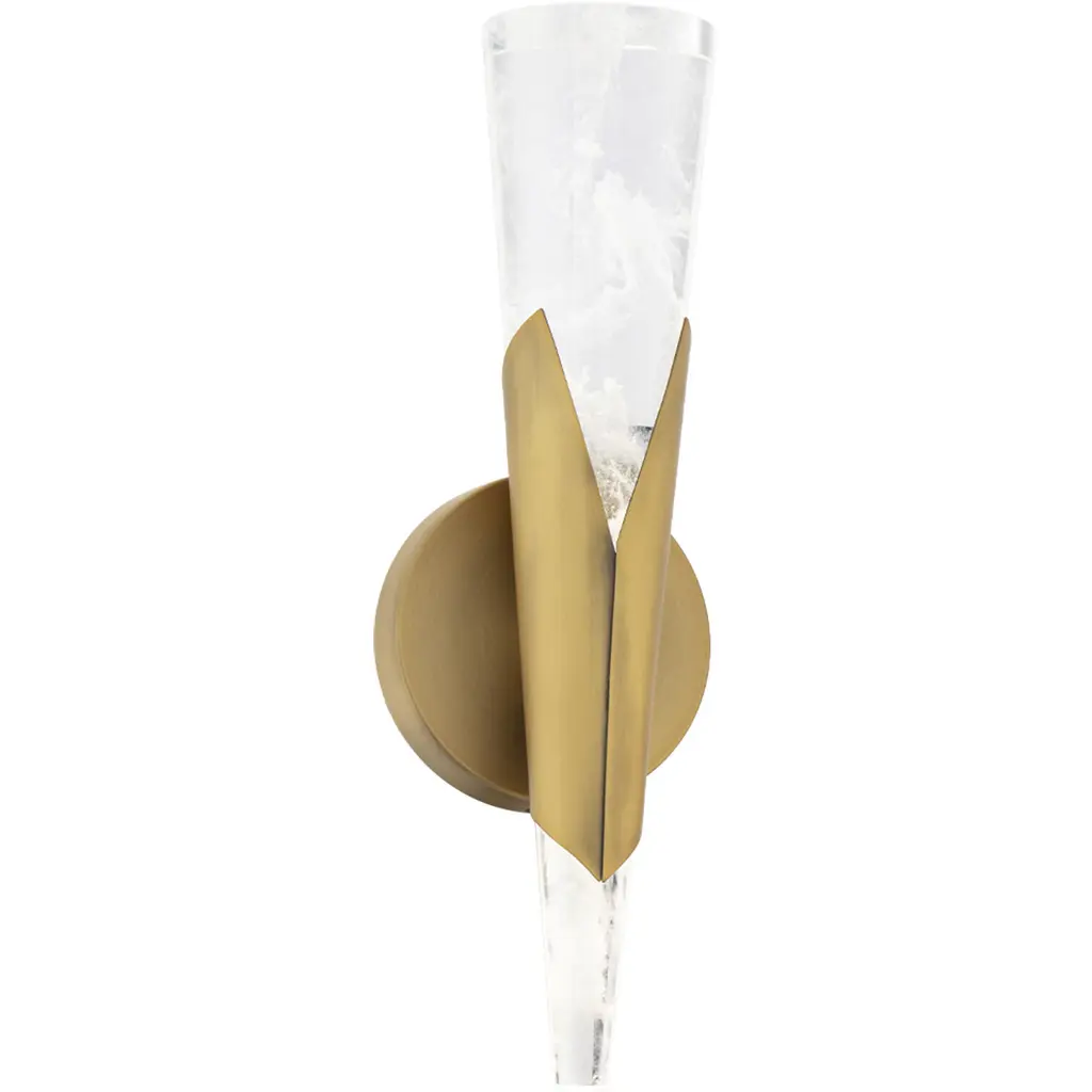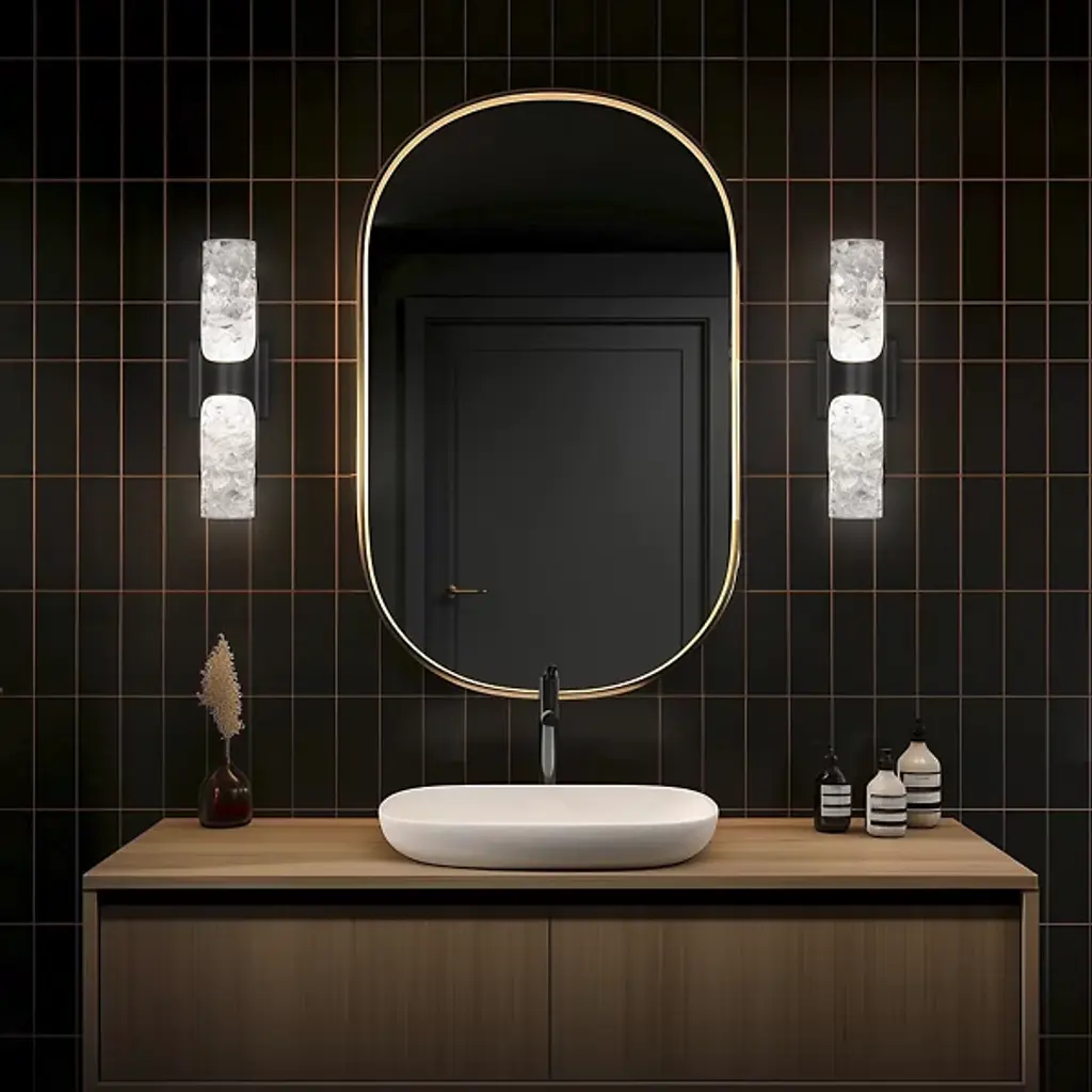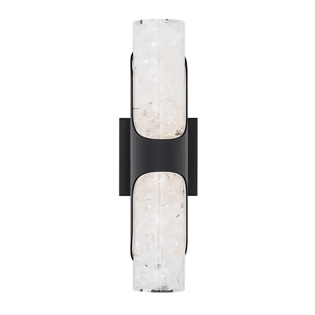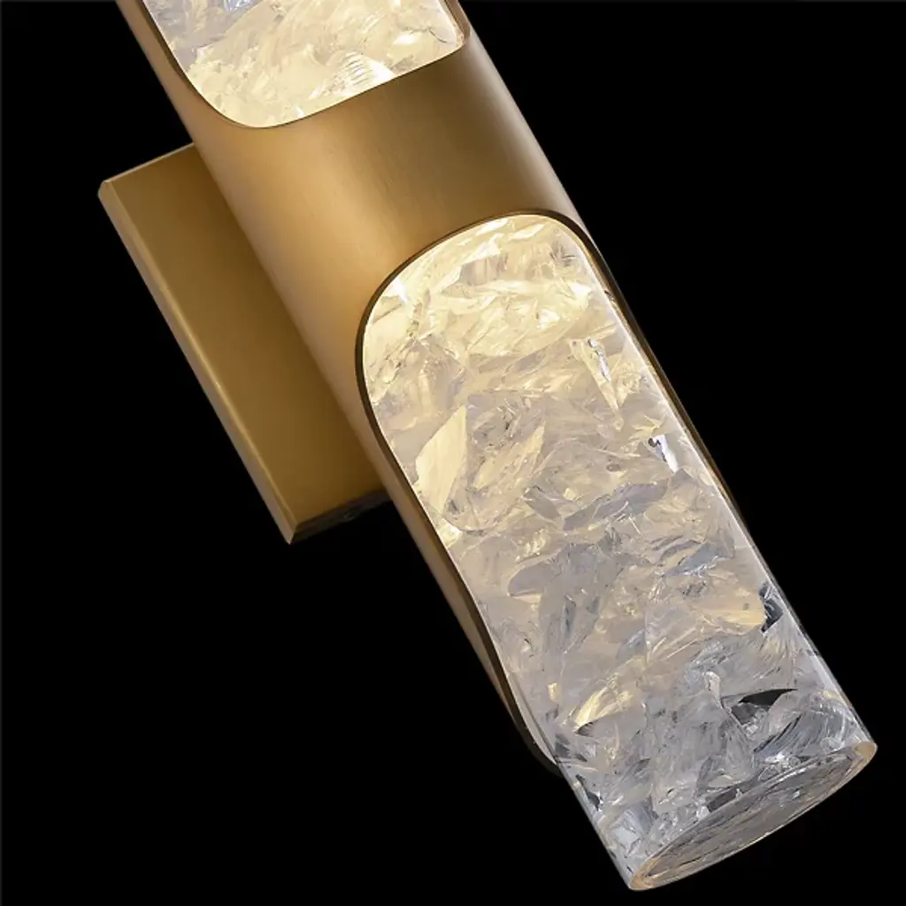 The Royce LED Wall Sconce from Modern Forms encases tiny shards of reclaimed K5 crystal within a reflective white housing that amplifies the sparkling illumination effects. A curved metal envelope secures the crystal-filled shade, subtly reflecting light patterns across the surrounding surfaces. The reclaimed crystal shards catch and scatter LED light into dynamic patterns that shift as the viewing angle changes. Wall or ceiling mounting flexibility accommodates different installation needs, while the curved metal frame adds sculptural interest. The crystal fragments create prismatic light displays that transform static illumination into active visual texture.