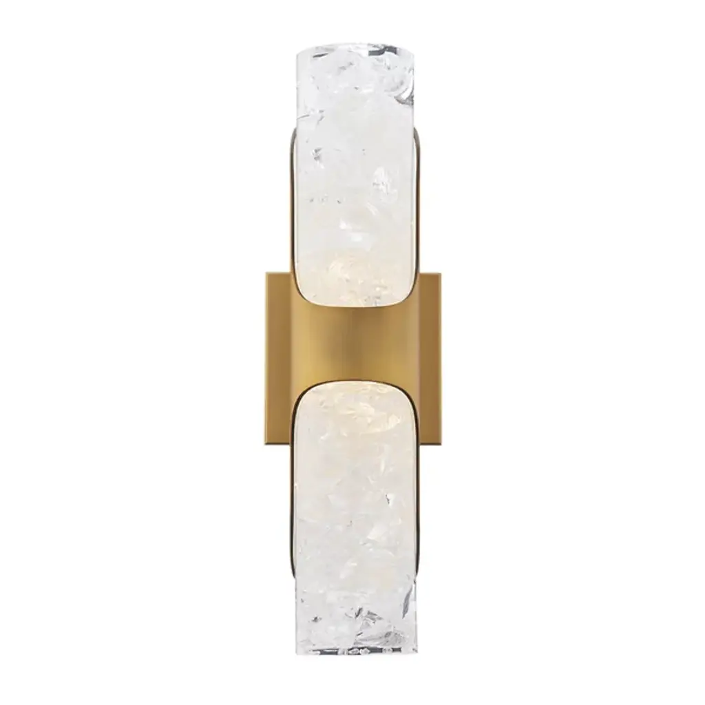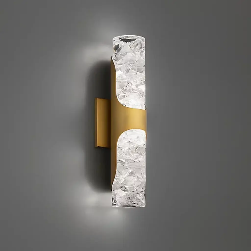 The Royce LED Wall Sconce from Modern Forms encases tiny shards of reclaimed K5 crystal within a reflective white housing that amplifies the sparkling illumination effects. A curved metal envelope secures the crystal-filled shade, subtly reflecting light patterns across the surrounding surfaces. The reclaimed crystal shards catch and scatter LED light into dynamic patterns that shift as the viewing angle changes. Wall or ceiling mounting flexibility accommodates different installation needs, while the curved metal frame adds sculptural interest. The crystal fragments create prismatic light displays that transform static illumination into active visual texture.