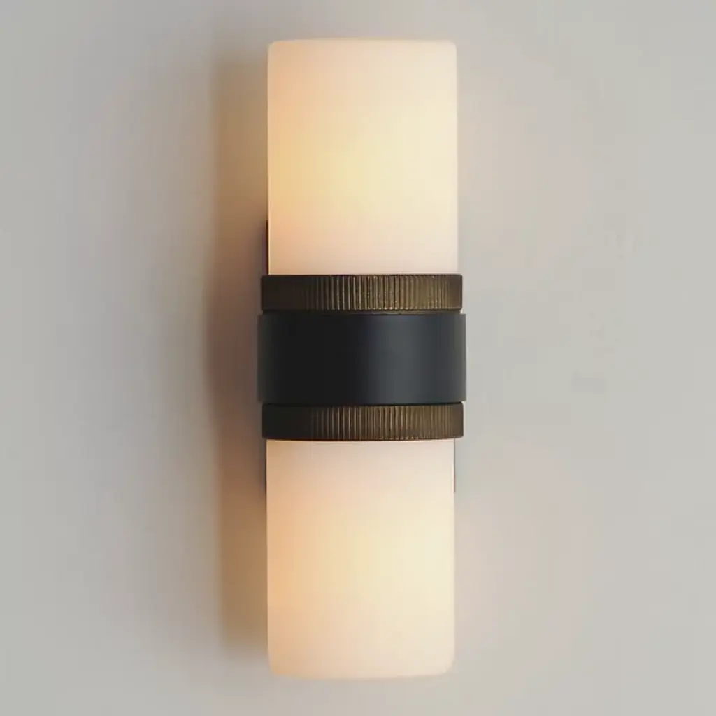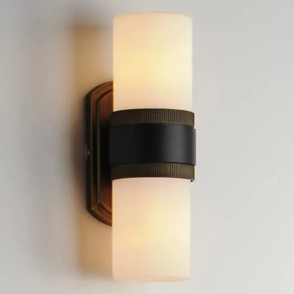 The Ruffles Outdoor Wall Sconce from Maxim Lighting redefines elegance. The antique brass ridged collars on a matte black frame create a transitional and stately aesthetic. This collection includes chandeliers, pendants, semi-flush mounts, and sconce lighting, offering a cohesive and sophisticated look across your space. The soft diffusion of illumination through a rounded cylinder of satin white glass adds a touch of grace, casting a gentle glow that enhances the ambiance. Elevate your decor with this exquisite blend of design and functionality.