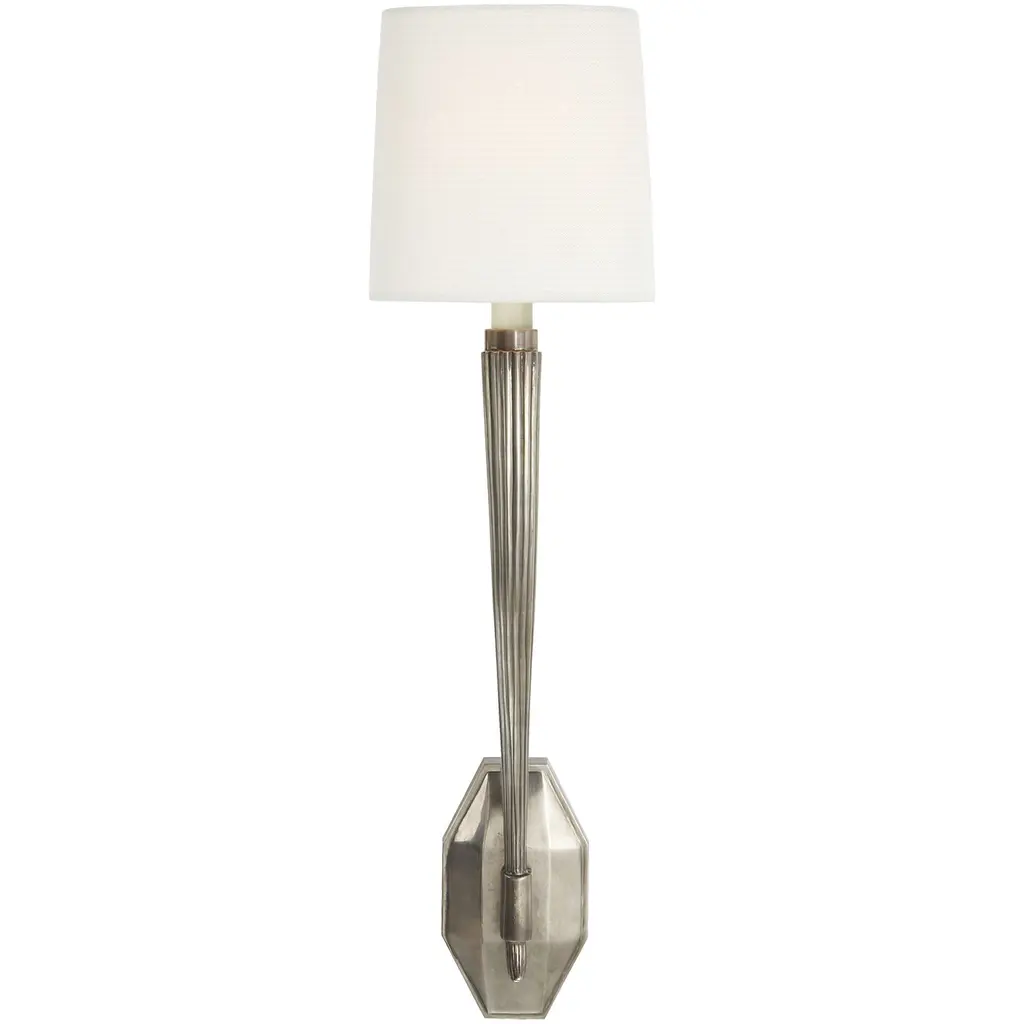 Visual Comfort Signature, formerly known as Visual Comfort,'s Ruhlmann Single Wall Sconce is elegantly curved and detailed with ridges for an aesthetically pleasing body. The Natural Paper shade creates a warm glow as it diffuses light smoothly through the room. The Ruhlmann Wall Sconce makes a stylist statement on any wall it graces.