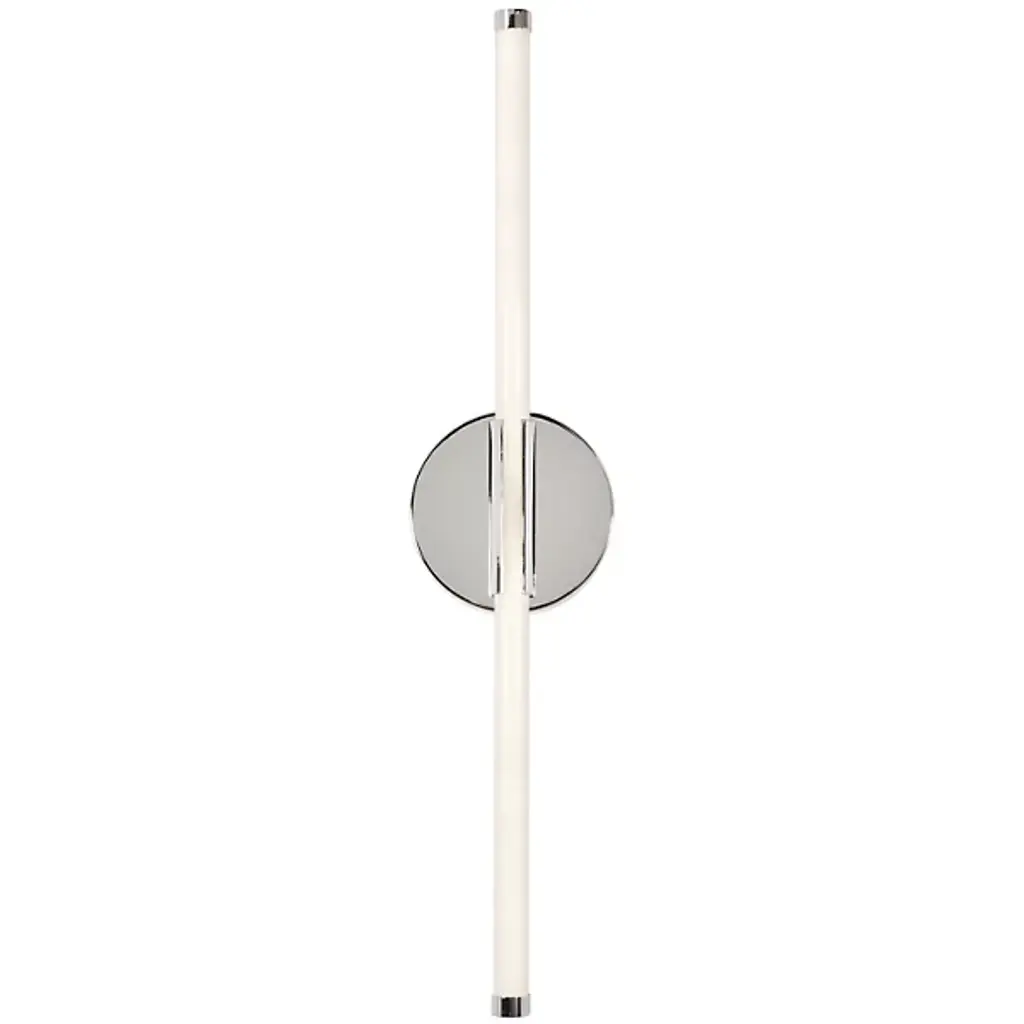 Minimalist lighting design with a pleasingly slender profile. The Rusnak LED Wall Sconce by AFX Lighting features a slim acrylic tube held vertically by a round steel wall plate, complete with coordinating end caps. The tube works to evenly diffuses the light of the LEDs housed within up and down a wall, as well as outward. Use this ADA compliant wall sconce to add modern elegance and vibrant illumination along a hallway or on either side of a bathroom mirror.