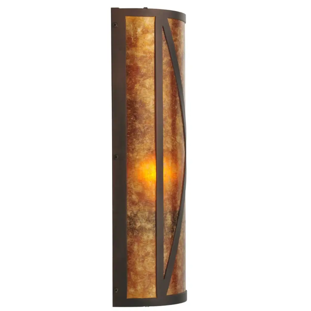 Add elegance with Deco-inspired lighting reminiscent of classic Hollywood theaters. The silver mica lens defines an extraordinary V-shaped sconce that is complemented with decorative accents, frames, and hardware. The fixture is ideal for foyers, corridors, and other interiors in homes, home theaters, resorts, hotels, and restaurants. Custom crafted in our 180,000-square-foot manufacturing facility in Yorkville, NY.