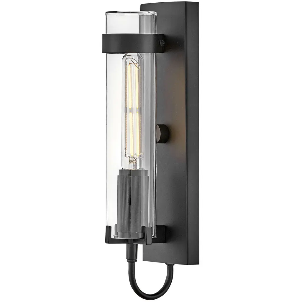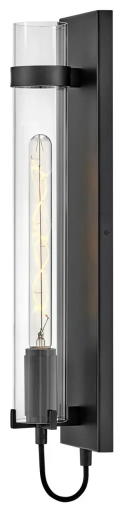 The Ryden Outdoor Wall Sconce from Hinkley Lighting is a versatile and striking design that effortlessly complements a variety of exteriors. Its elongated clear glass shade elegantly envelops the bulb, supported by sturdy cast prongs and a knurled fitter. The bold and refined silhouette offers timeless appeal and attention to detail. The Ryden becomes a captivating focal point, adding both style and functionality to any outdoor setting.