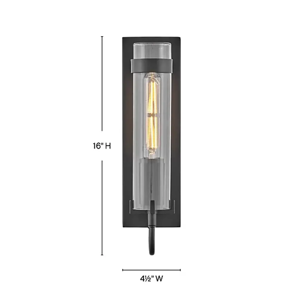 The Ryden Outdoor Wall Sconce from Hinkley Lighting is a versatile and striking design that effortlessly complements a variety of exteriors. Its elongated clear glass shade elegantly envelops the bulb, supported by sturdy cast prongs and a knurled fitter. The bold and refined silhouette offers timeless appeal and attention to detail. The Ryden becomes a captivating focal point, adding both style and functionality to any outdoor setting.