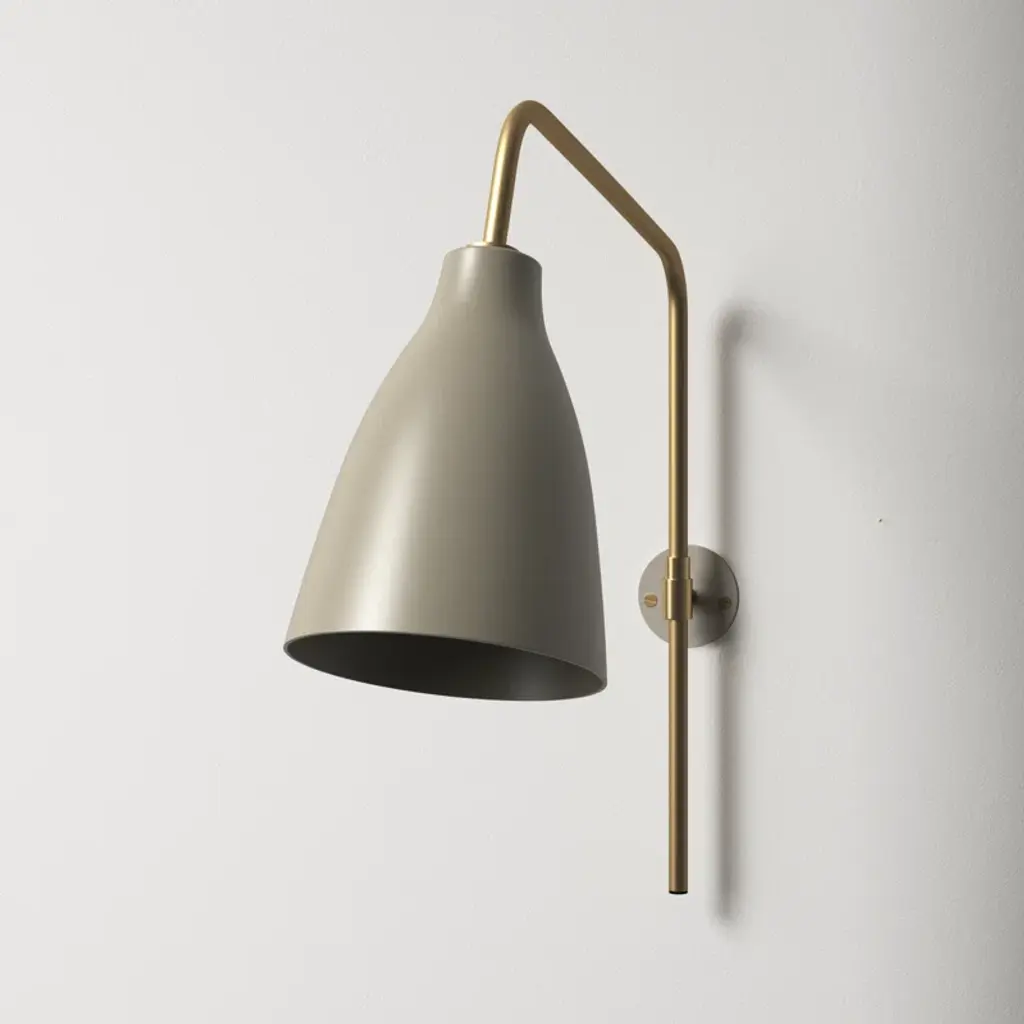 With a minimalist silhouette and a plug-in design, this slim wall sconce adds versatile task lighting to your space. Crafted from metal, it features a slim circular wall mount and a bell shade in a matching gray tone. A brass-finished arm connects the two pieces, with the plug cord along the base to connect it to your walls. This fixture accommodates a single 25W bulb, and casts its light down, making this lamp ideal for reading nooks or flanking your bed. Bulb sold separately.