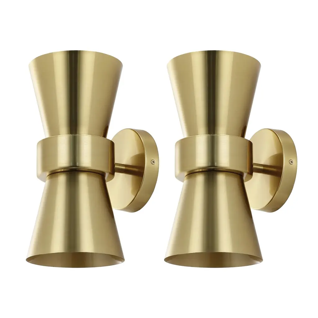 Add a gleaming and sophisticated focal point to your wall with our stunning wall sconces. Taking a cue from modern retro designs, the wall sconces make a chic and glamorous statement. They show off double cone-shaped shades to achieve a distinct and charming presence. Our set of wall sconces radiates luxury and sophistication into any corner. They cast a warm glow on both sides to beautifully flank and illuminate your bedside, console, or gallery wall.