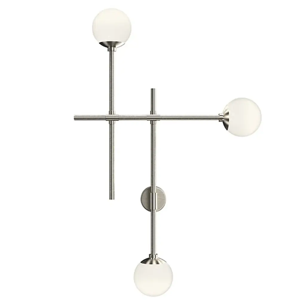 The intersection of geometric simplicity and sculptural creativity. The Sabon LED Triple Wall Sconce by SONNEMAN was designed to create a big impression using just a few essential elements. It features 3 White Cased Glass shades, which stand out in both their soft spherical shape and their almost otherworldly glow when they’re turned on. They are set seamlessly at the end of Metal stems, which are precisely intersected over one another to project the broadest wash of light possible as well as to present a sharply geometric and artistic display. An excellent lighting option next to the bed or on either side of a sofa.