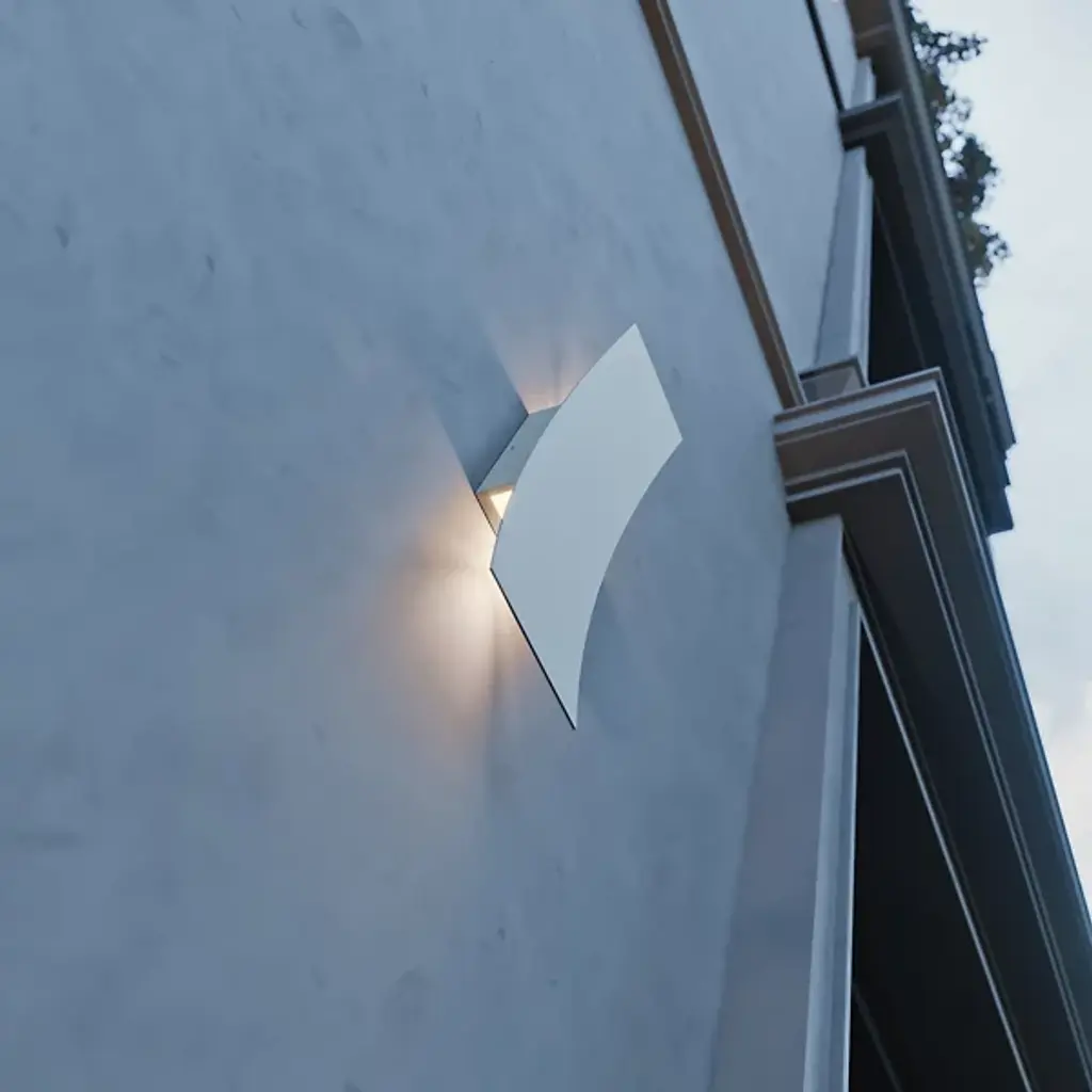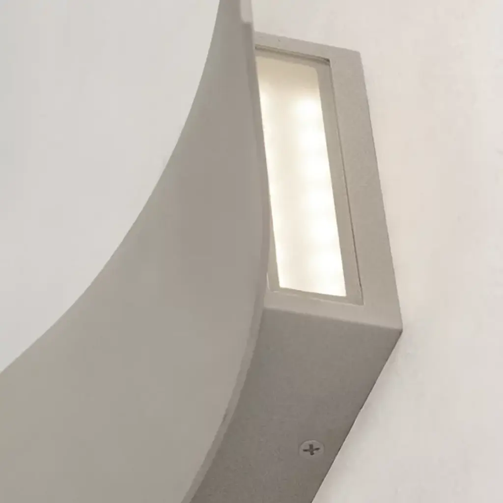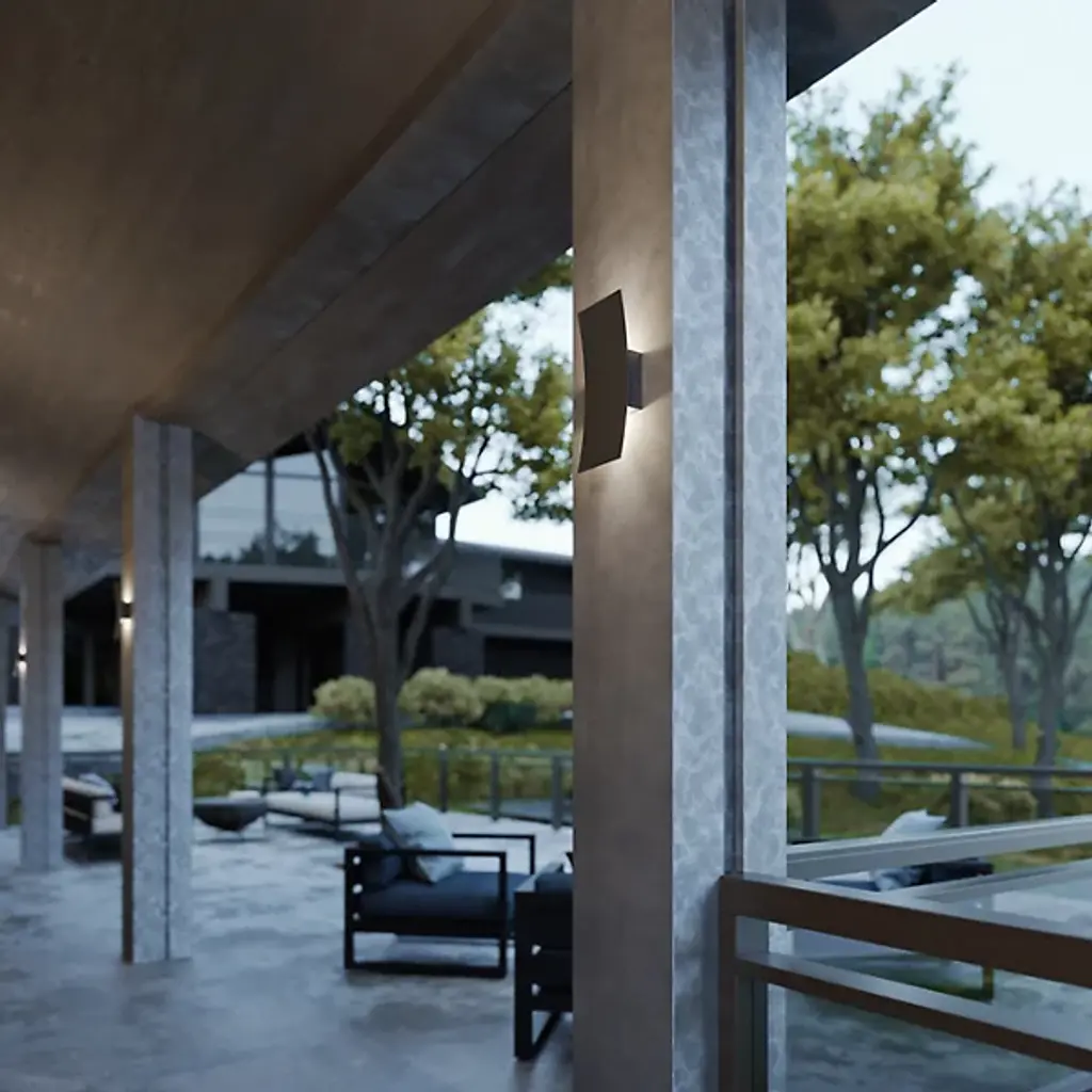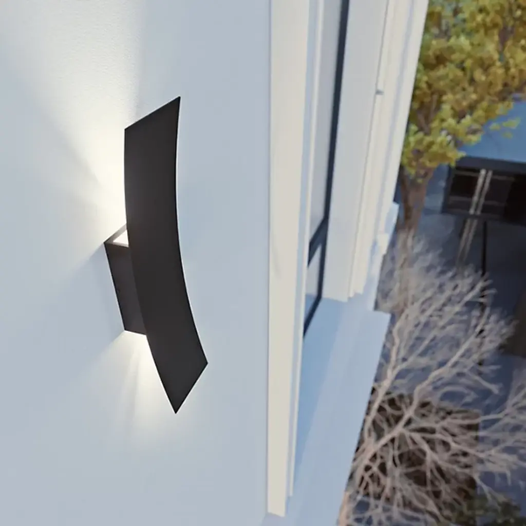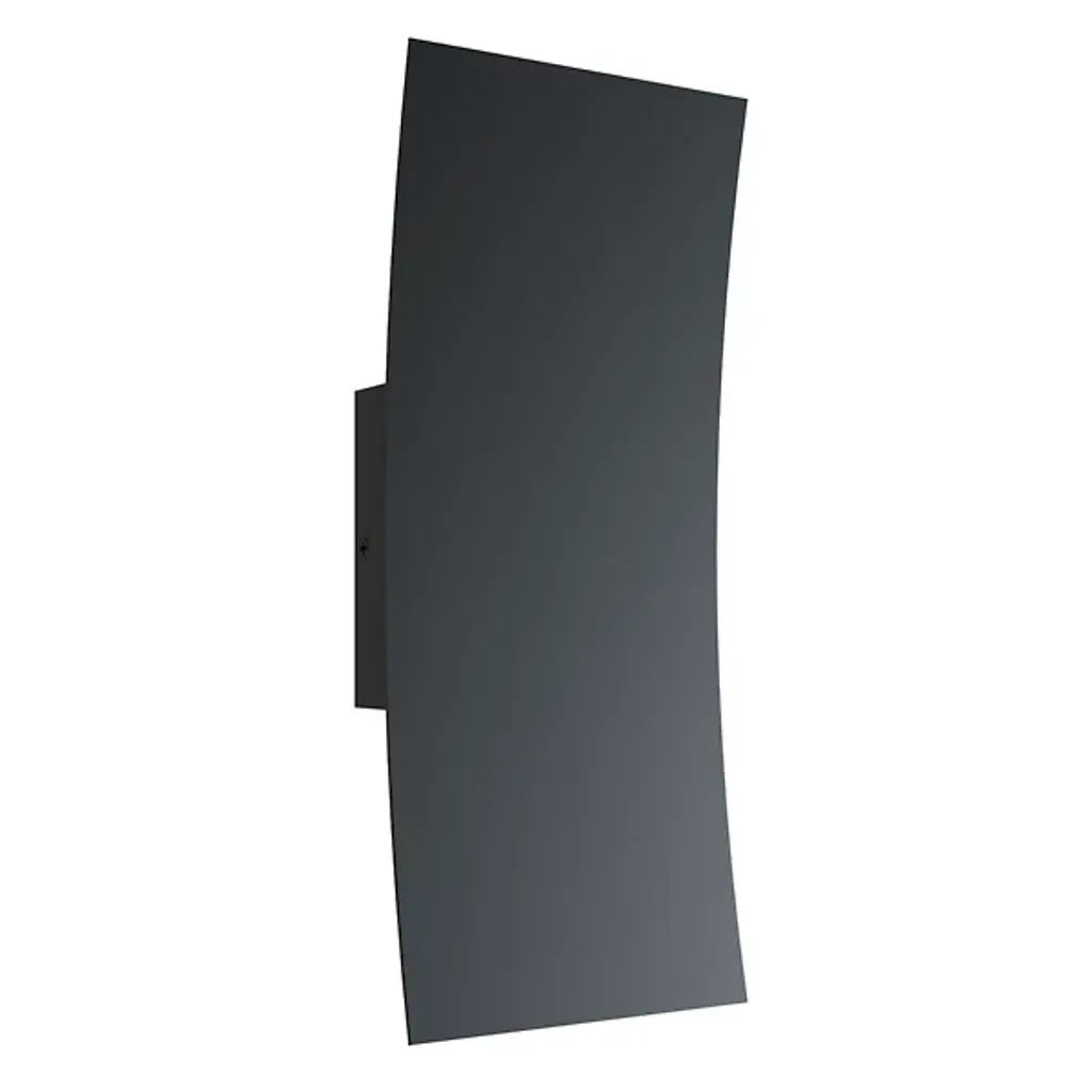 Ultra-modern lighting designed to set the mood outside. The main decorative feature of the Sadie Outdoor LED Wall Sconce by AFX Lighting is a curved, rectangular panel of powder-coated Stainless Steel. The panel is also super-functional, both hiding the integrated flat panel LEDs and directing their light in a soft, glare-free wash up and down a wall. The ambient lighting effect is at once atmospheric and welcoming, making this outdoor wall light a great option for a modern entryway or patio area.
